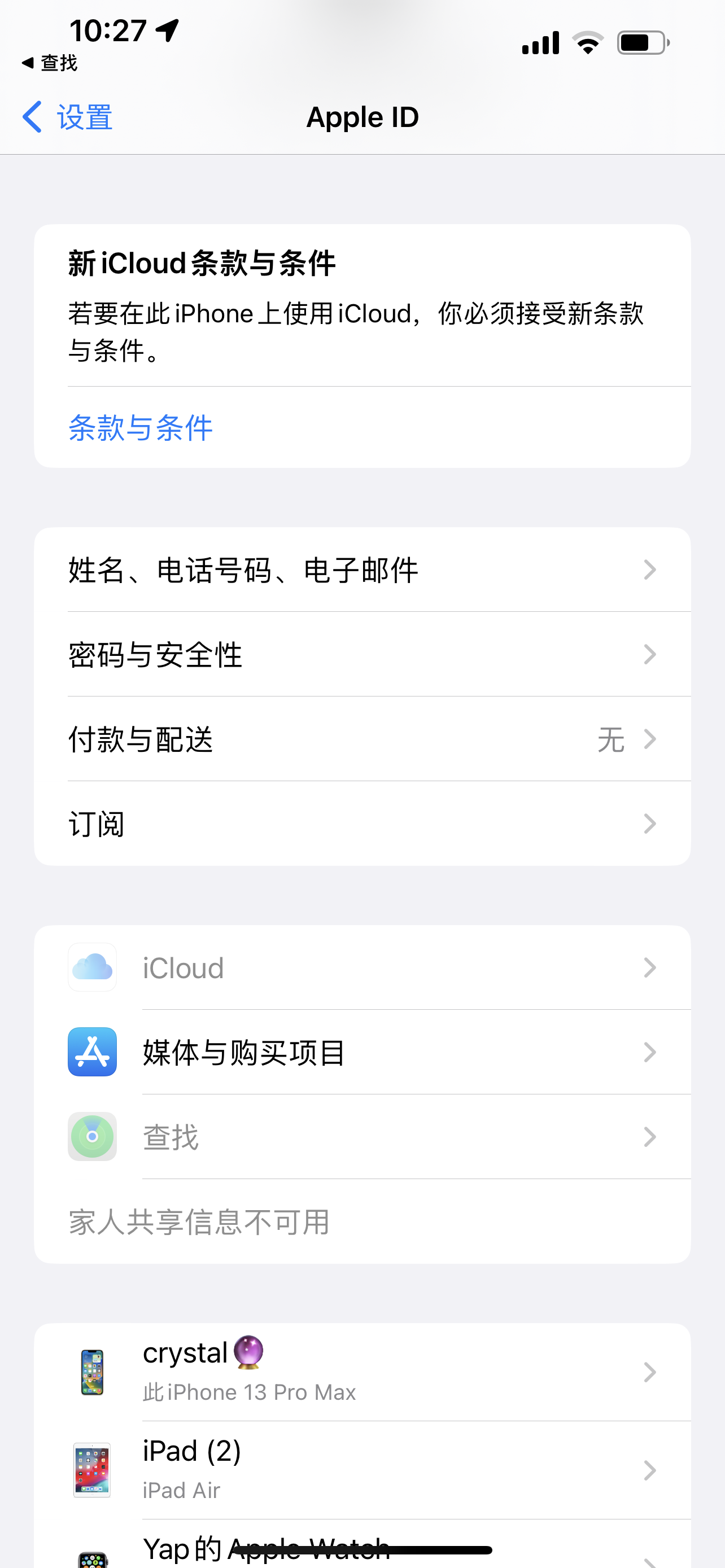 如你提供的截图中的信息所示,“iCloud 条款与条件”于前些时间有了更新。在重新接受新的条款与条件前,你的账户的所有 iCloud 服务都暂时不可用。