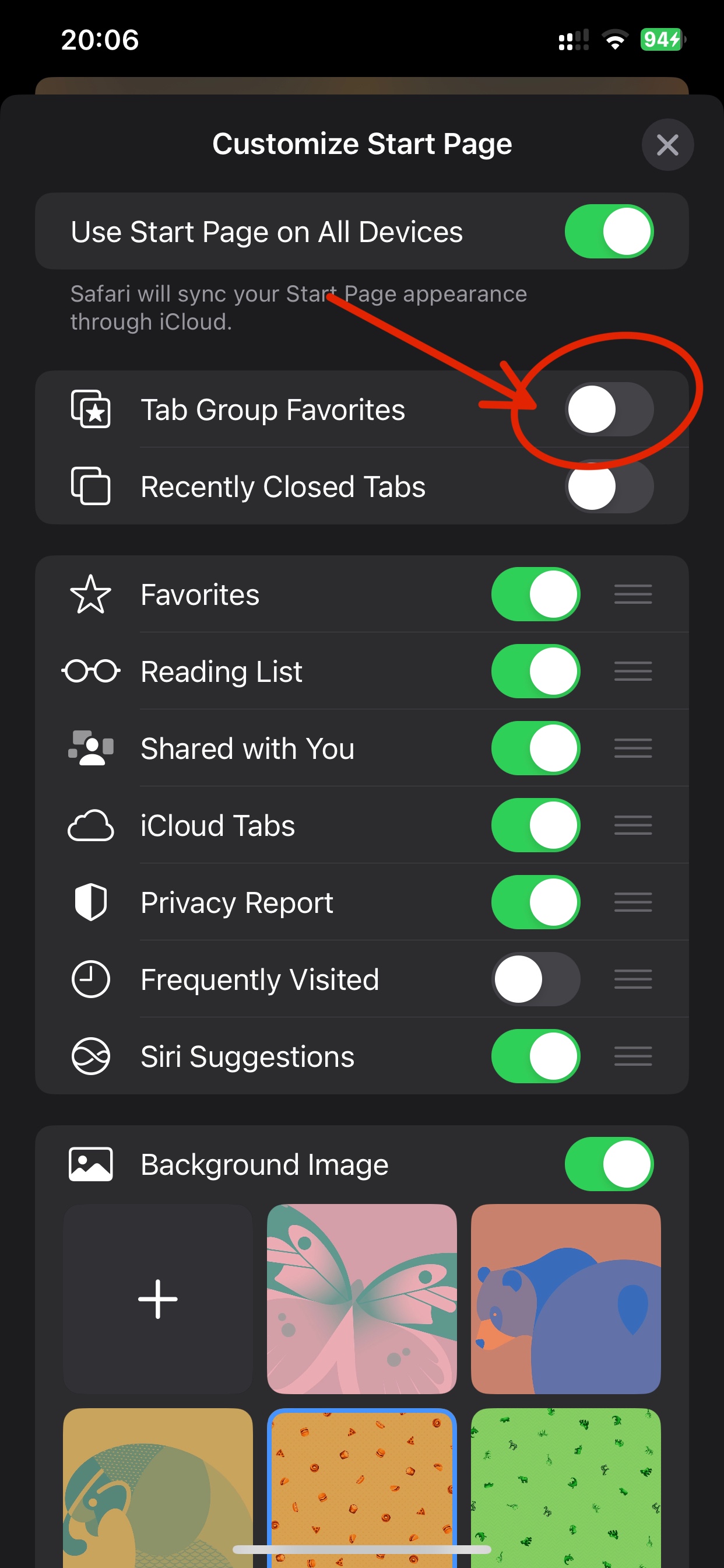 以下用户的用户个人资料: matóna matóna 用户级别: 级别 2 472 积分 2023年2月23日 上午4:12 回应 Apple_TANG 你好打开 Safari 需要编辑的标签页组,在起始页中拉到底部,点击“编辑”2. 关闭“标签页组个人收藏”选项 回复 链接