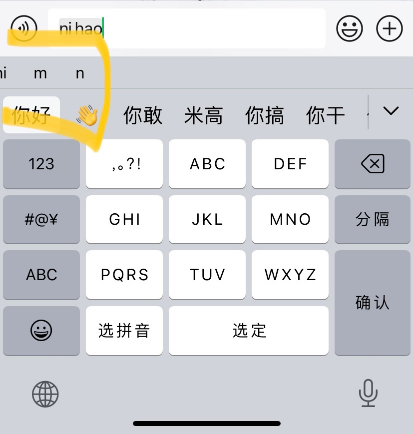 在中文九键输入法中,输入后文字预览时,上方选择拼音的地方,两个字母的拼音显示不全,如图