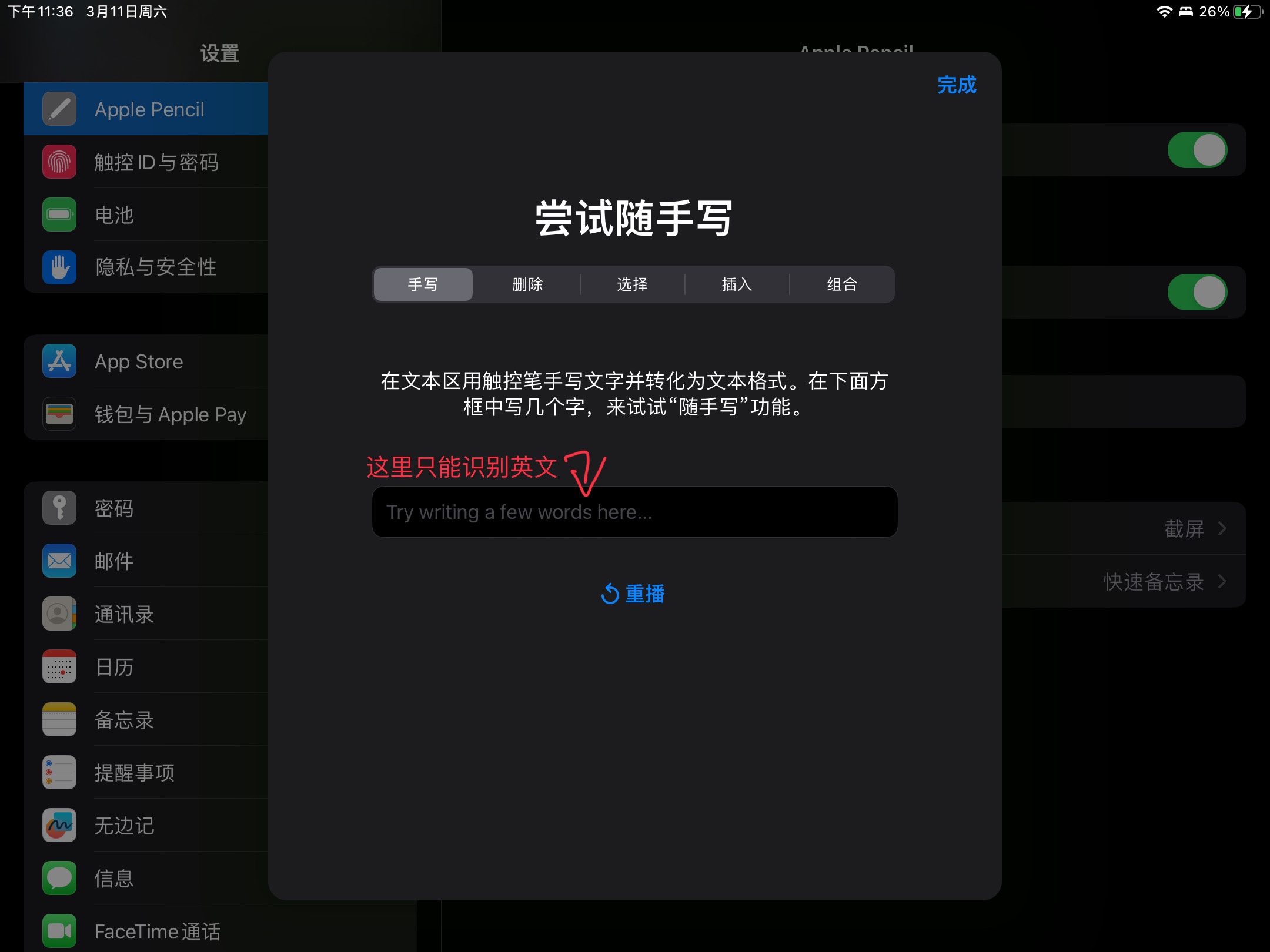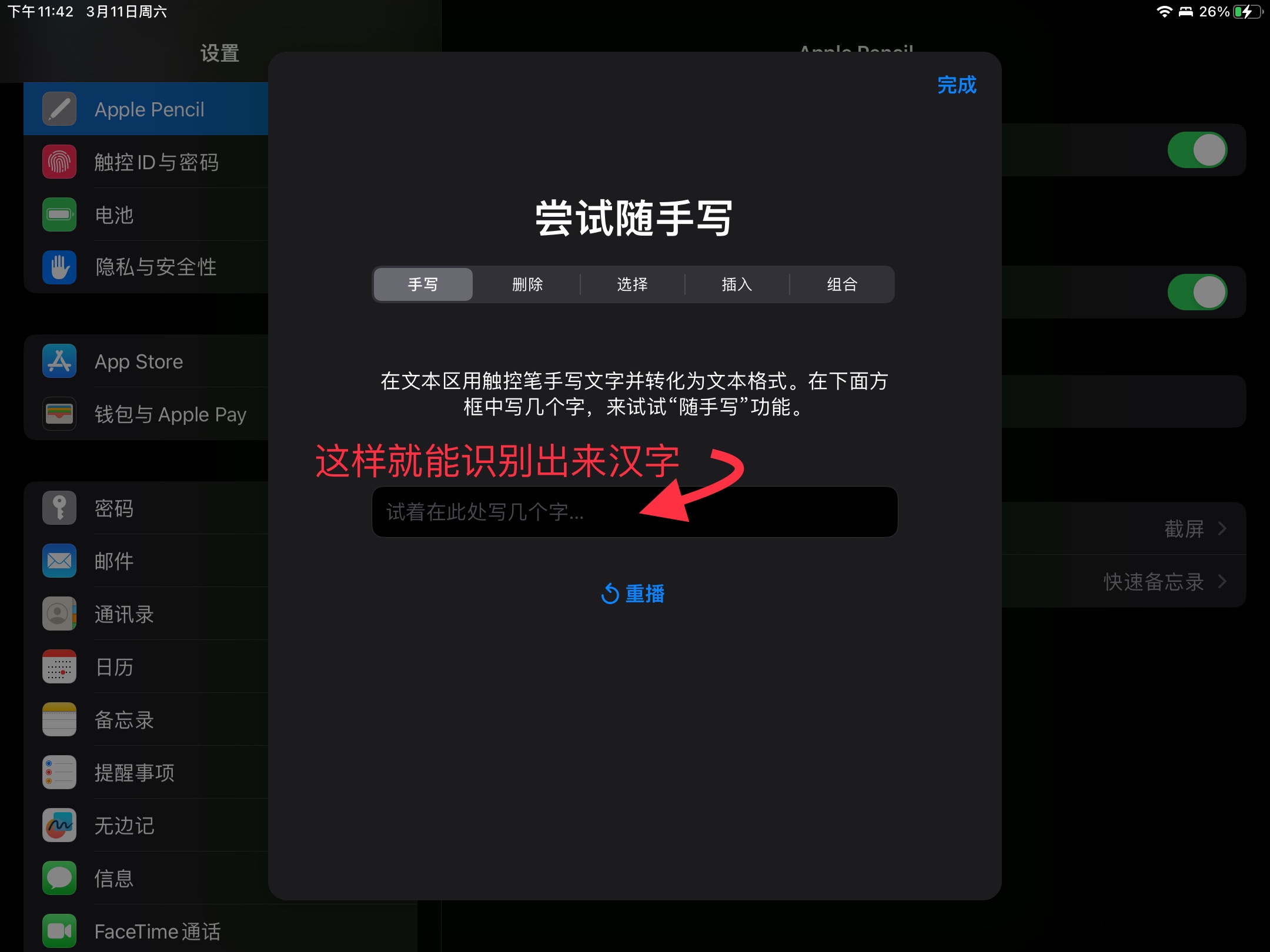 关于Apple Pencil写出汉字无法识别的问题