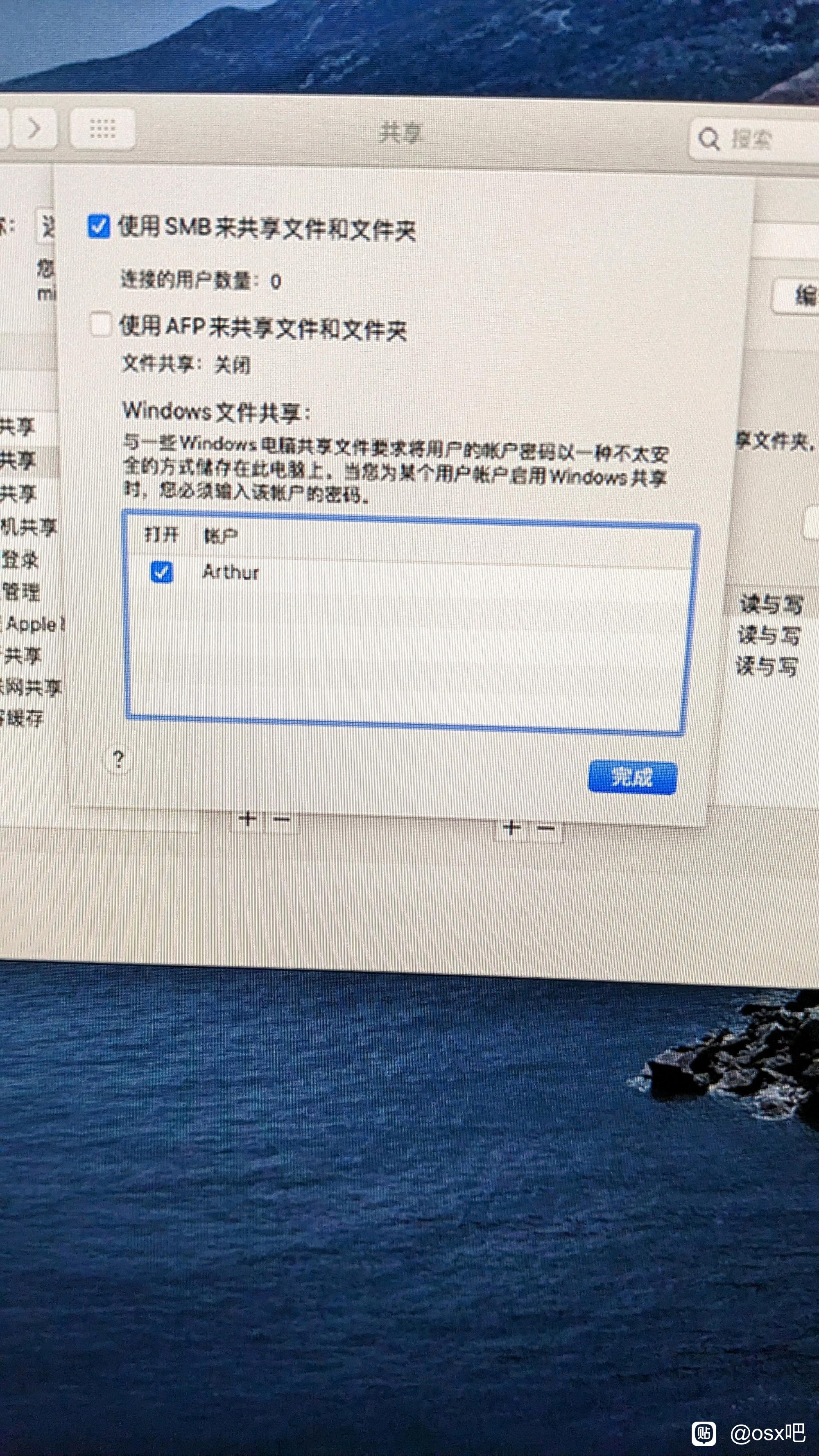 确认 smbd 在完全磁盘访问 隐私设置中是准许的。如果没有,重新启动;还不行就关闭共享,再打开。