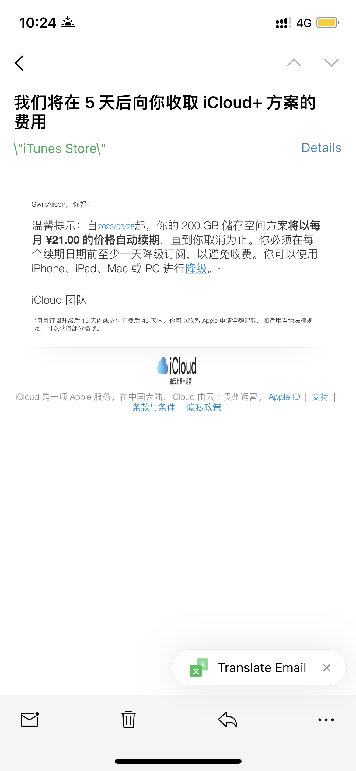 icloud已加入2t家庭组,却还要扣费21元的200G方案费用
