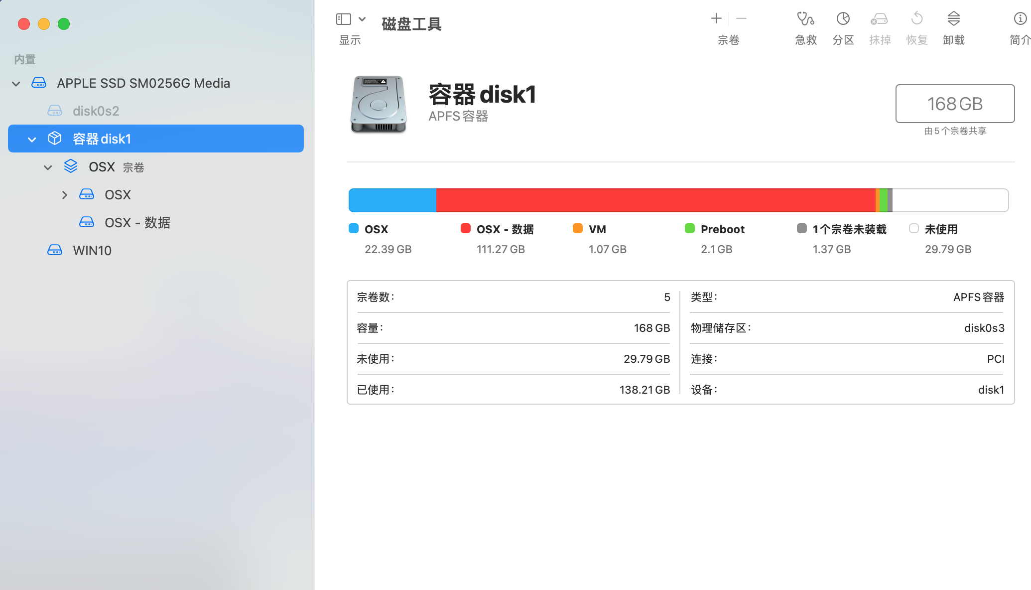 确定了此APFS容器的目标物理储存区最大为178,001,018,880字节