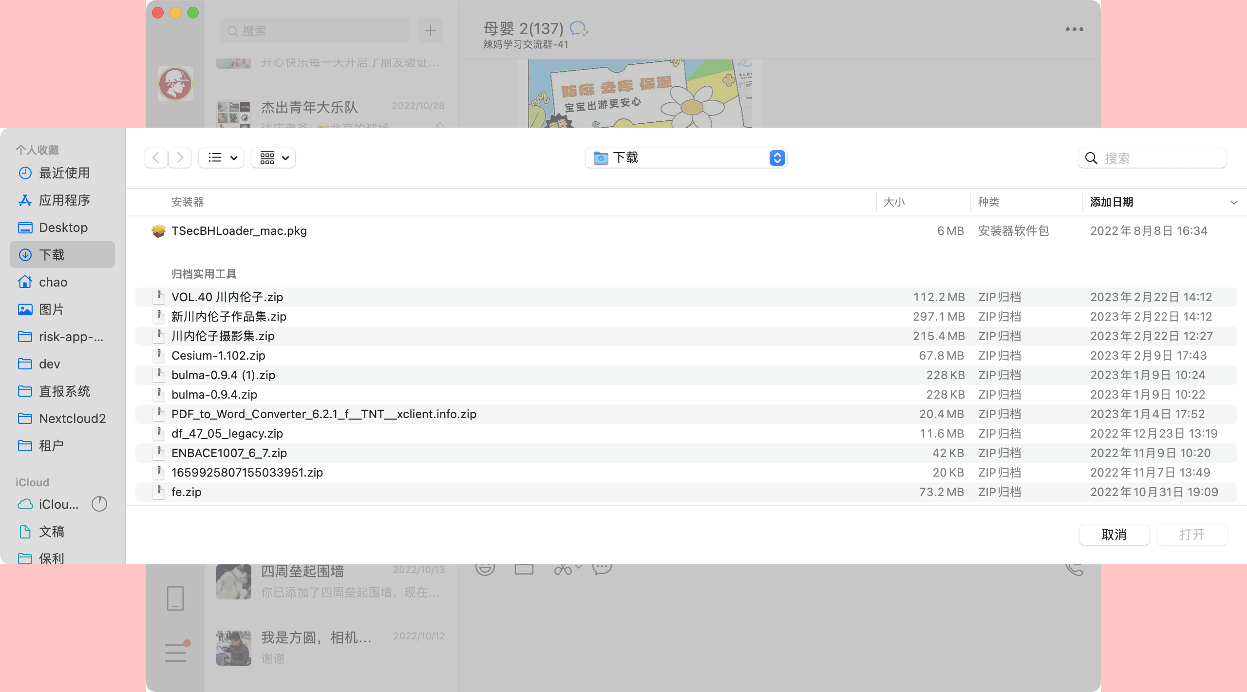 2 是在微信中给别人发送文件是,调起Finder下载列表,同样按照添加时间倒序,但是我今天的文件没有排到最前面,反而在下面要仔细翻阅很久才能找到