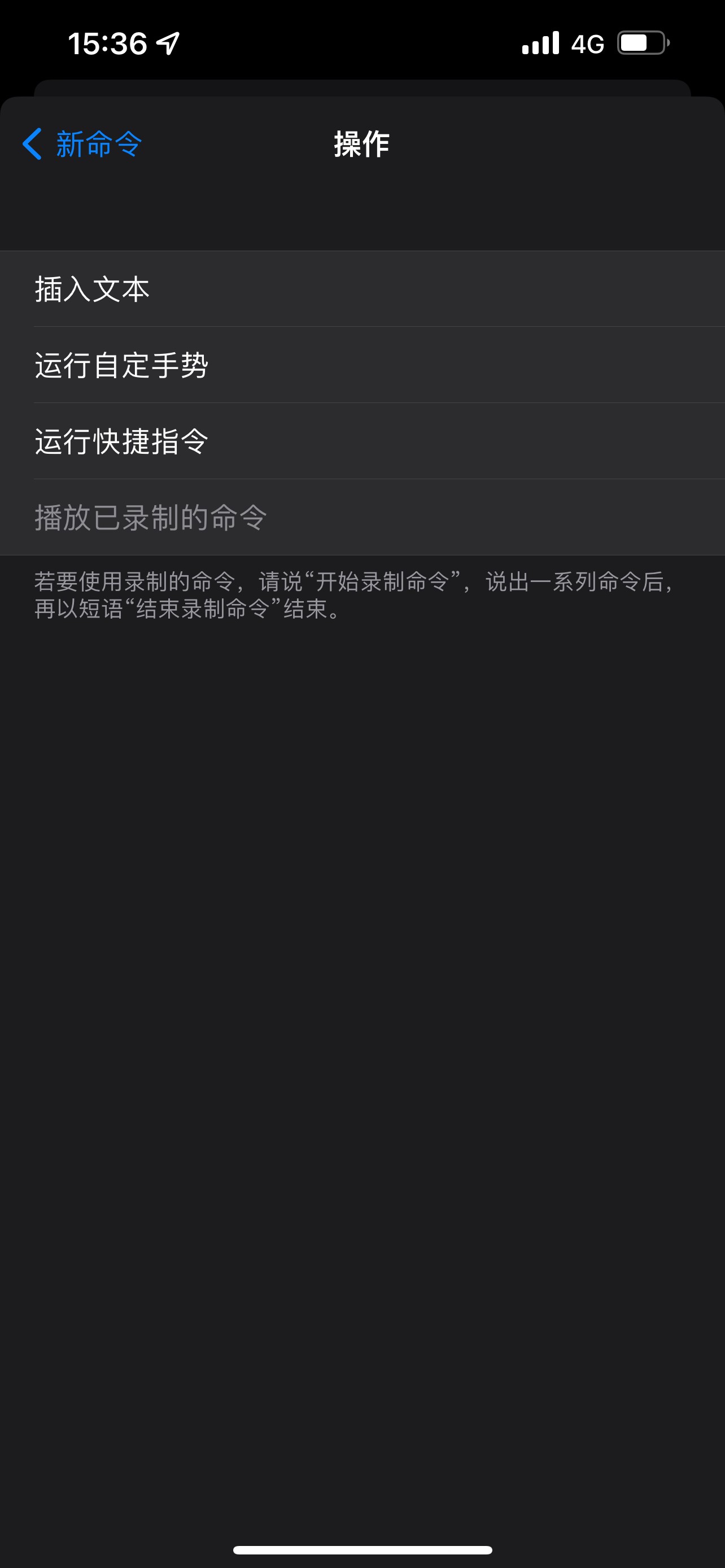辅助功能-语音控制-自定命令-创建新命令-操作