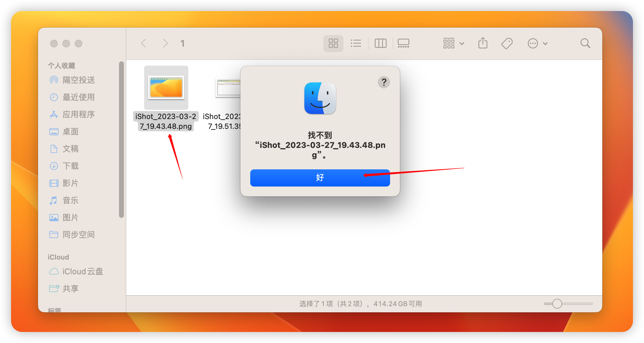 打开文件夹里的图片,显示访达找不到,如何解决?