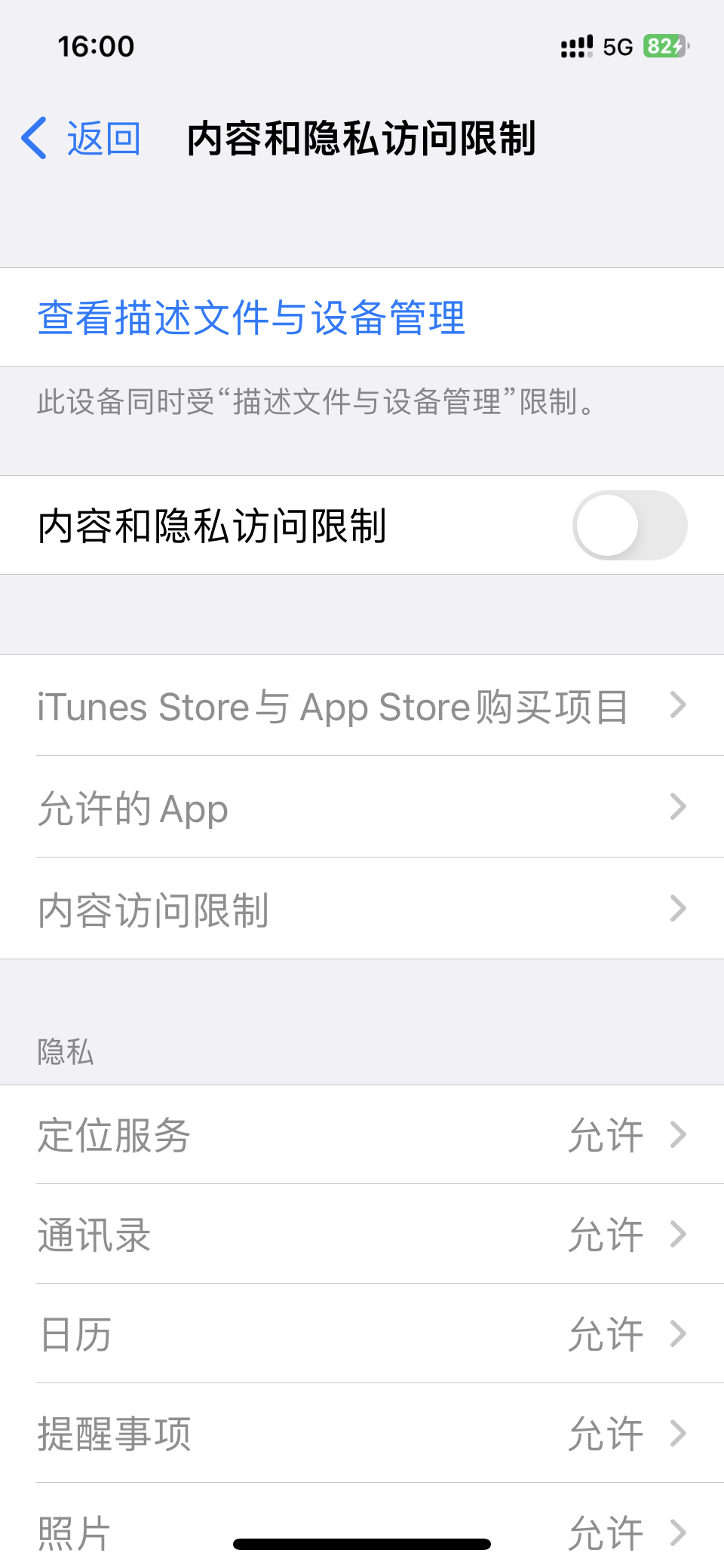 1. 点击“查看描述文件与设备管理”看看安装的描述文件具体有什么限制。
