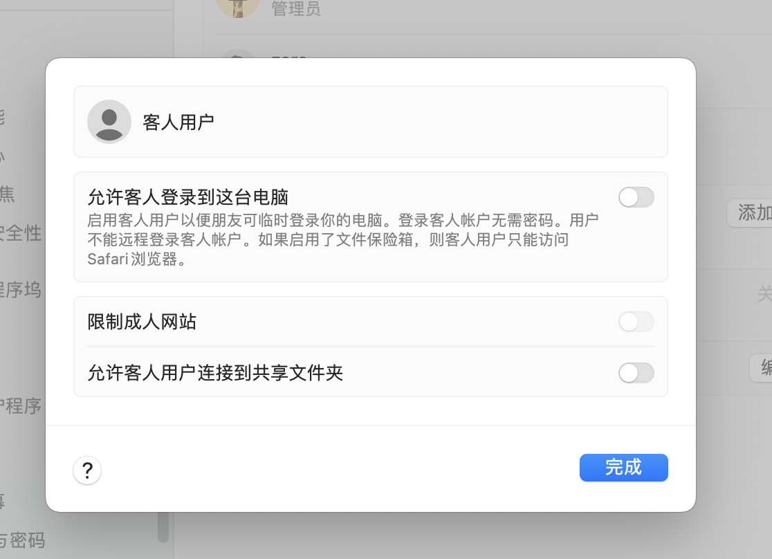 2:客人账户后面ⓘ的按钮并无删除的字样