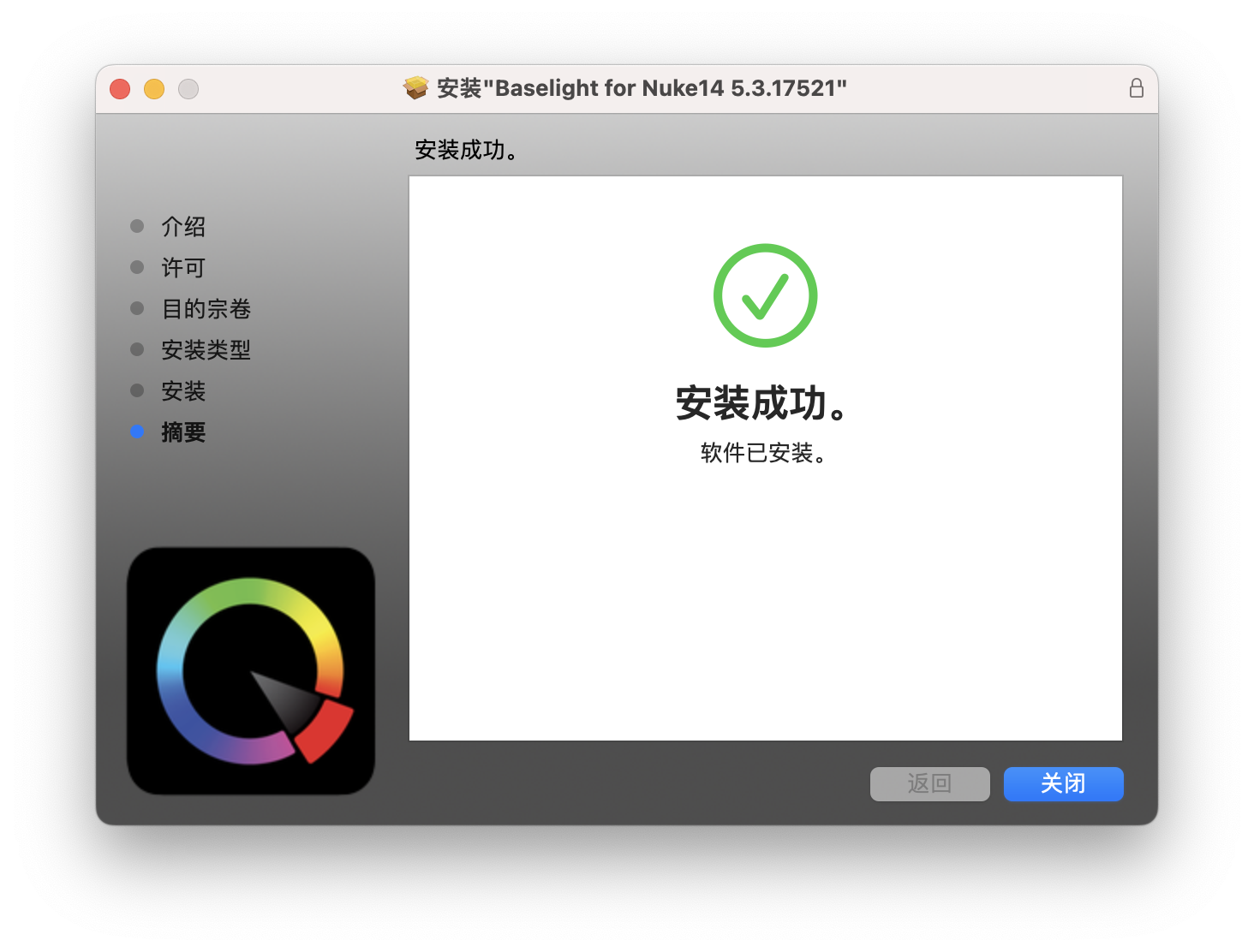 Baselight for Nuke 最新版本目前应该是 5.3.17521 (macOS - NUKE 14),我测试了一下在 macOS 13.3 上面安装顺利。