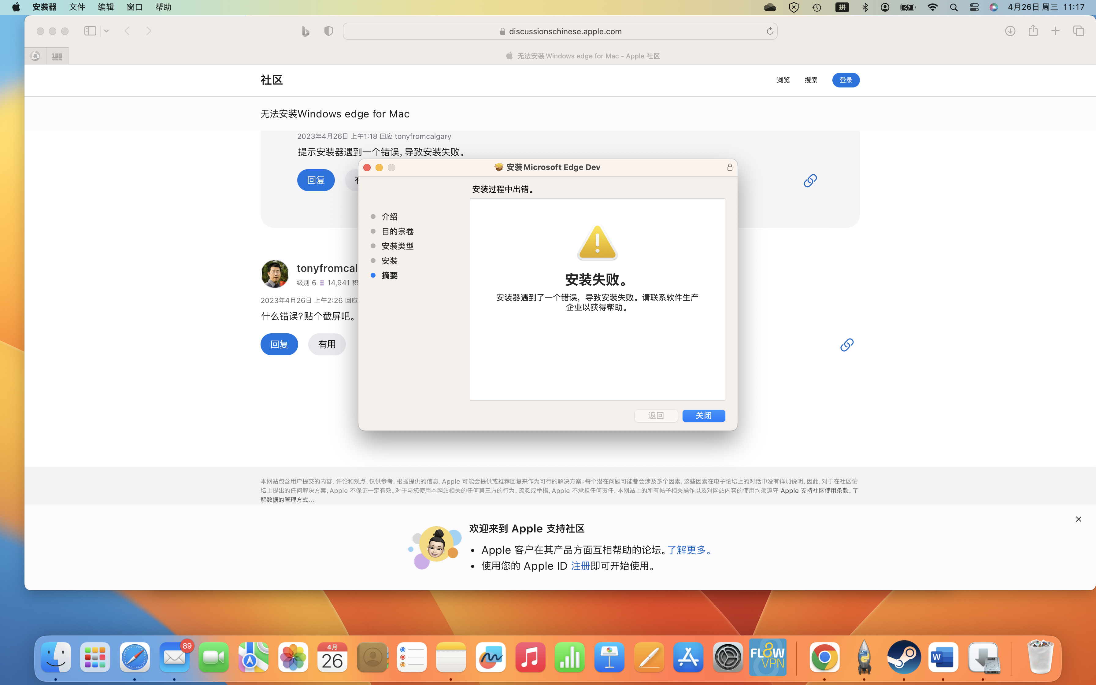 microsoft官网下载的Windows edge for Mac 为什么无法安装
