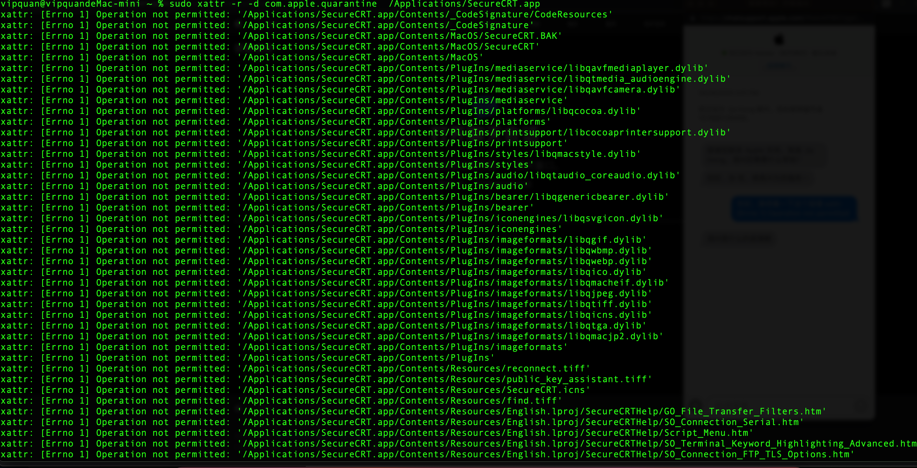 xattr: [Errno 1] Operation not permitted: '/Applications/SecureCRT.app/Contents/MacOS/SecureCRT.BAK'