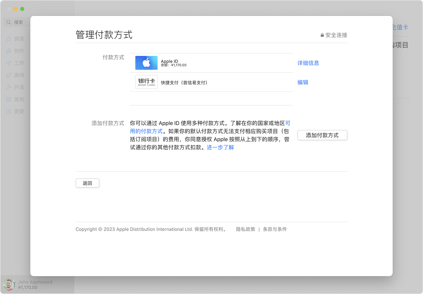 在某些国家和地区,当您在appleid.apple.com上在线编辑付款信息时,其他付款方式可能会自动从您的帐户中删除。