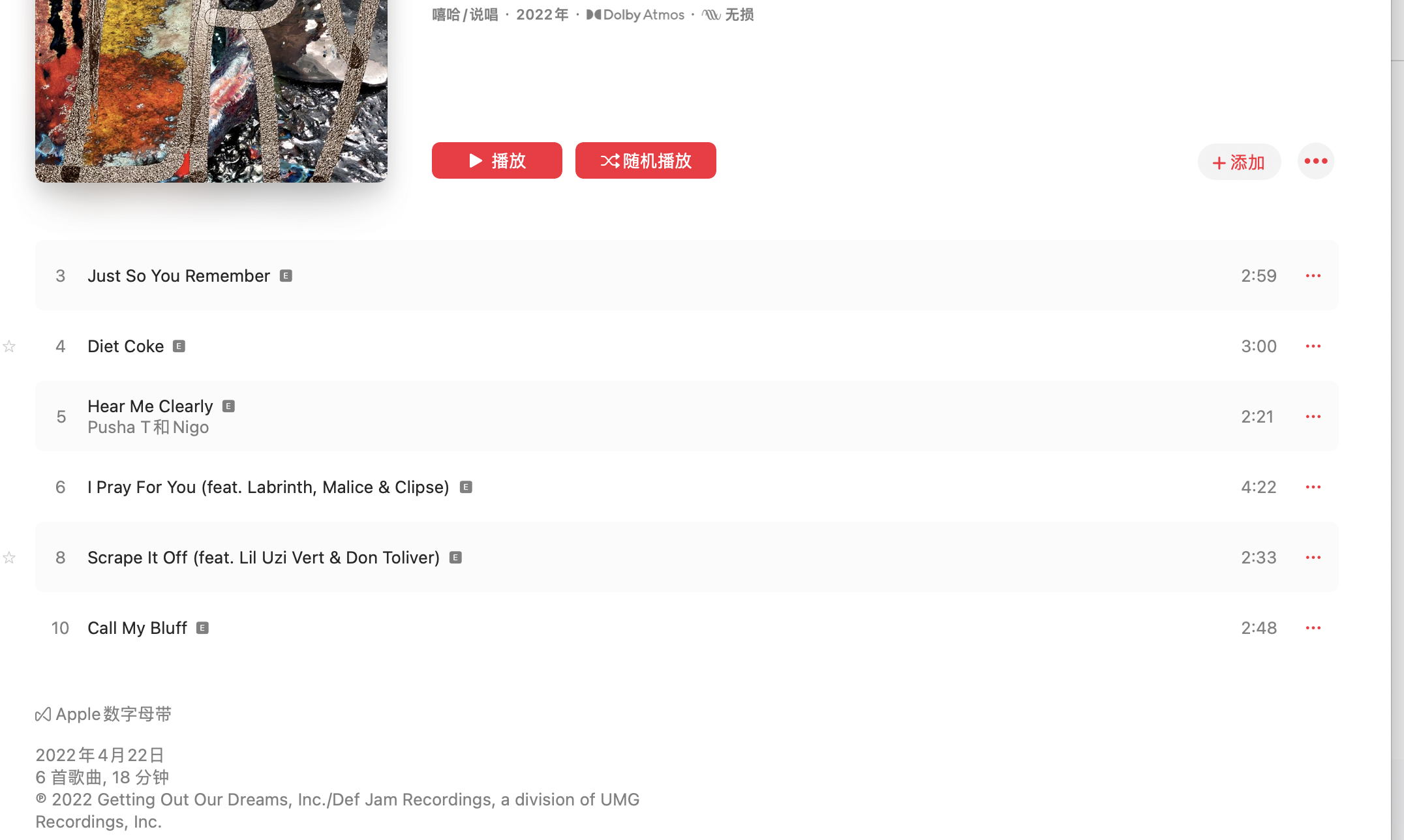 但是今天想听 extreme 的08年专辑,却发现14首歌只有7首在歌单里。这个就肯定不是敏感内容的原因了。
