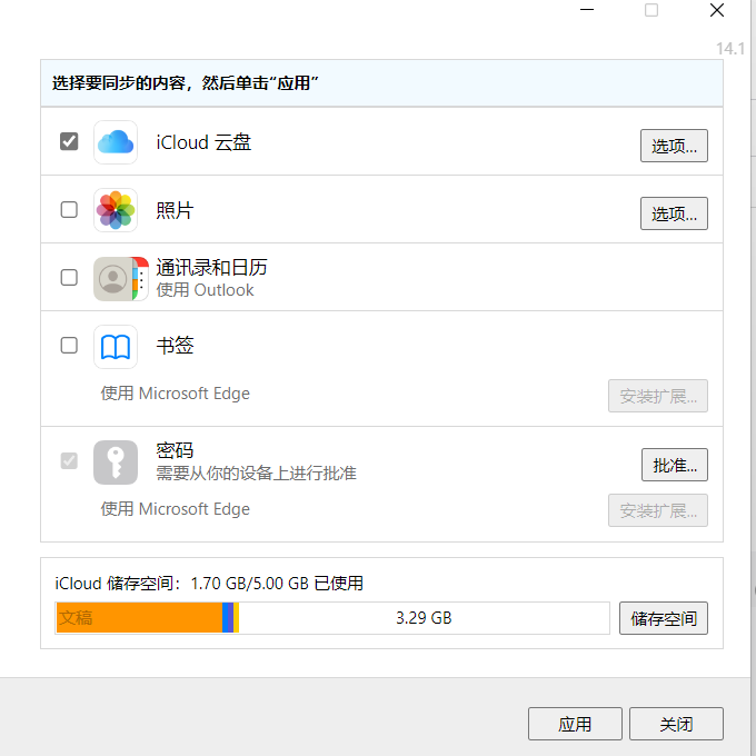 Windows11上Microsoft Store安装的iCloud 14.1 在同步界面无法勾选"iCloud"云盘
