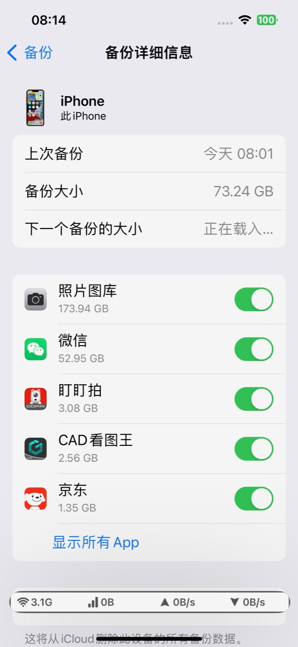 为什么手机存储内容至少200g,但icloud备份只有70几g?