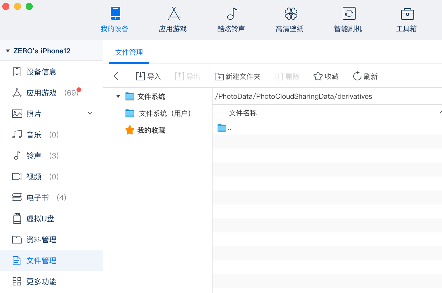 怀疑是照片某些功能产生的缓存导致的,所以用爱思助手,将手机连接到电脑,查看文件系统中的所有照片相关的文件夹