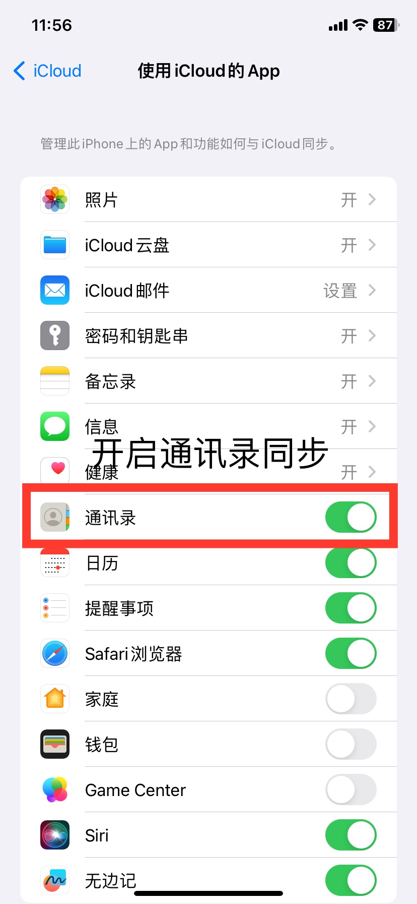 首先开启iCloud的备忘录同步,