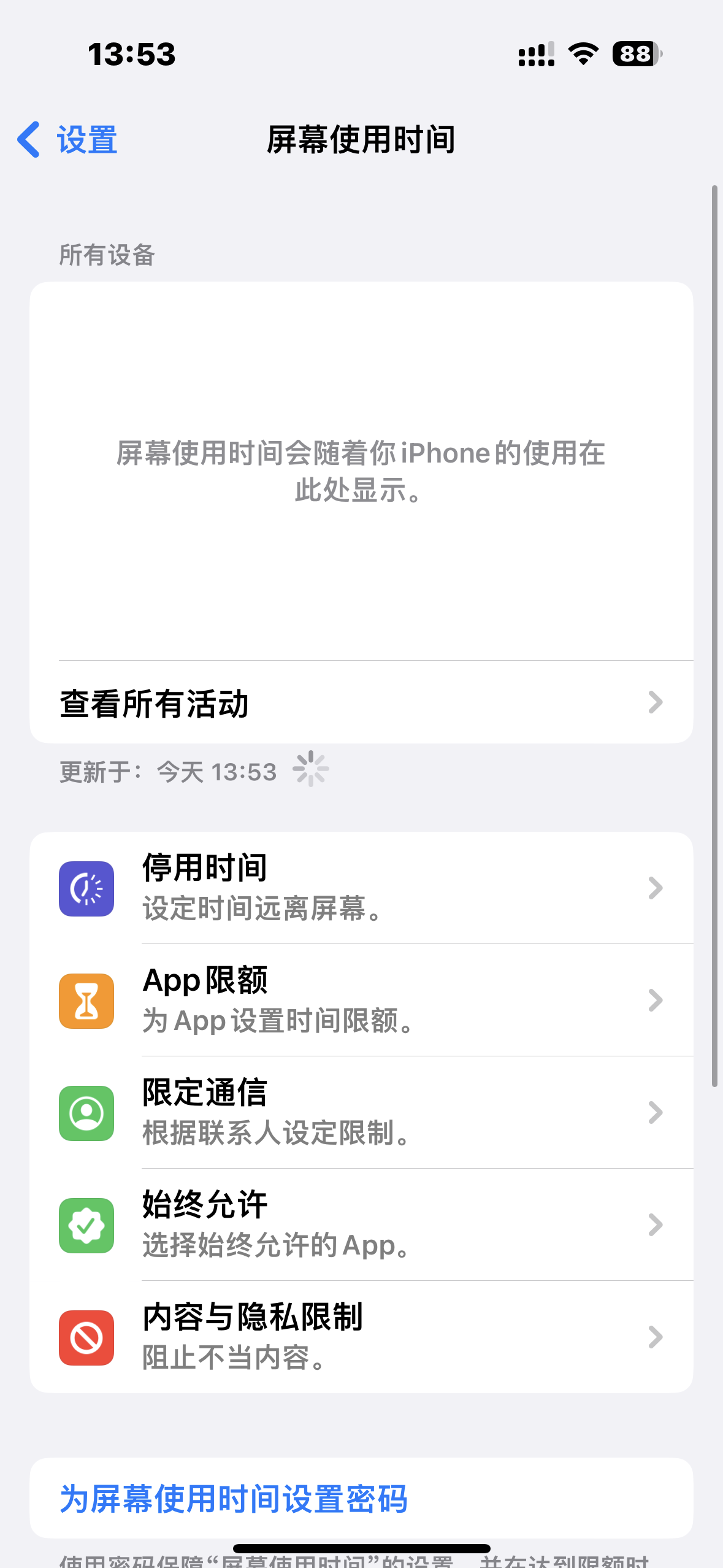 明明每天都在用手机,屏幕时间就是不显示iphone上是这个样子。但是平板上面还是正常显示
