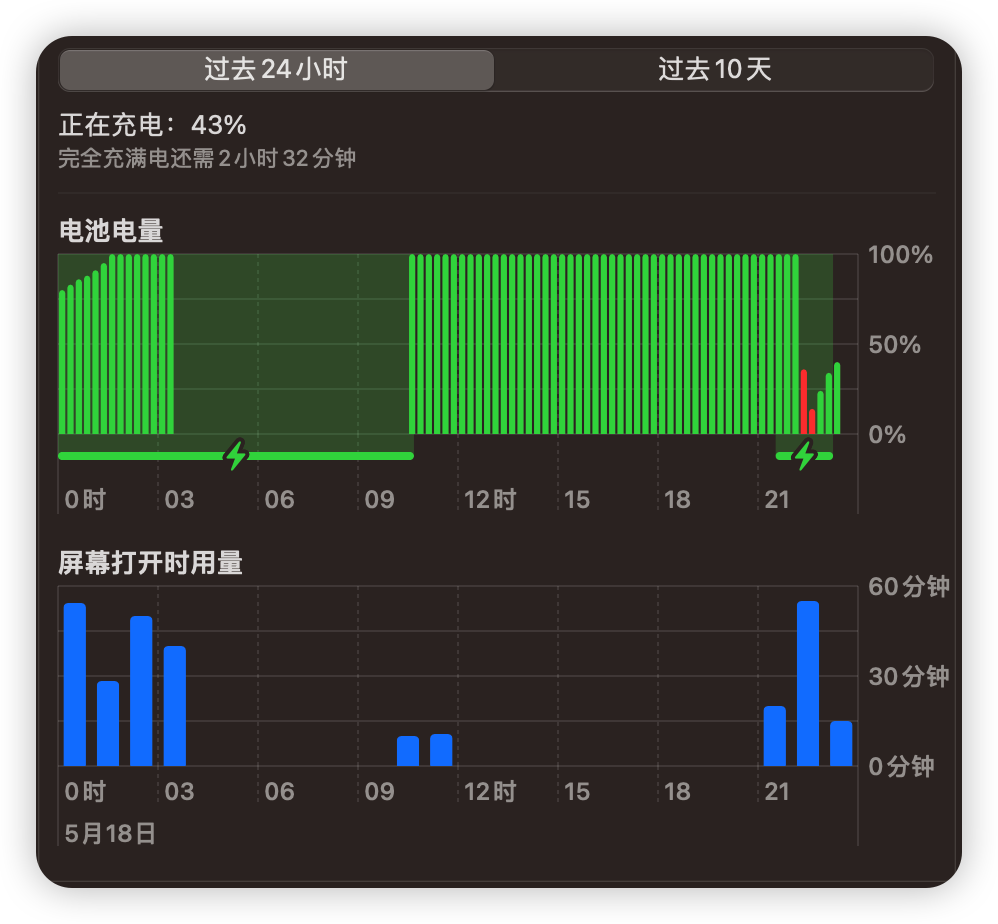 m2 MacbookAir 充电循环7次,电池健康100%,7天前左右,电池充满后关机,刚刚开机,显示无法开机,电池已经耗尽,24小时电池用量完全看不懂,我关机状态,居然有充电记录,不知道这电哪里来的,充电从0一下子到100%,我记得很清楚,今天晚上21点多是最近一周第一次打开macbook,平常都用imac的,macbook拔掉电源放在抽屉里,房间基本就我一个人,好奇怪