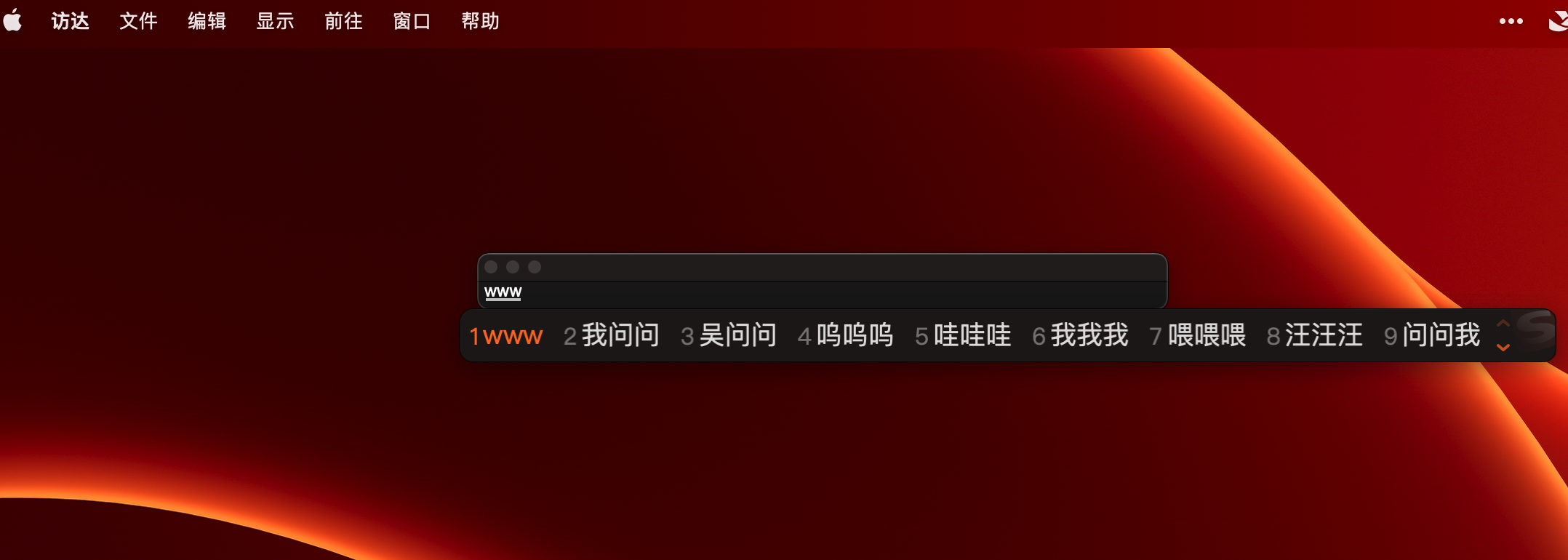 在访达或桌面中,只要使用中文拼音输入就会弹出一个输入框,更换输入法、重启访达或重启电脑均无法解决。