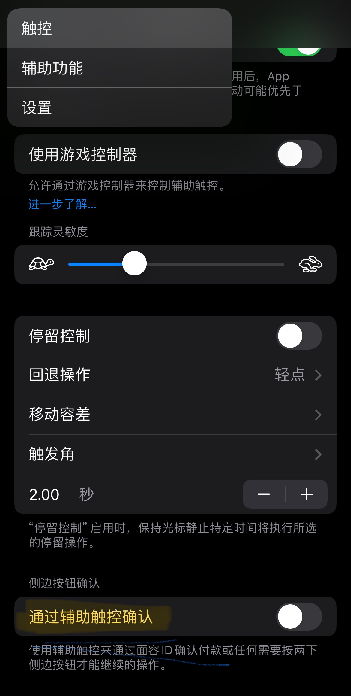 以下用户的用户个人资料: 古_月 古_月 用户级别: 级别 1 9 积分 2023年6月26日 上午8:15 回应 网际流云 设置-辅助功能-触控-辅助触控 底部有通过辅助触控确认,不过开启需要双击侧边按键。如果是间歇性可用的话可以尝试。 回复 链接