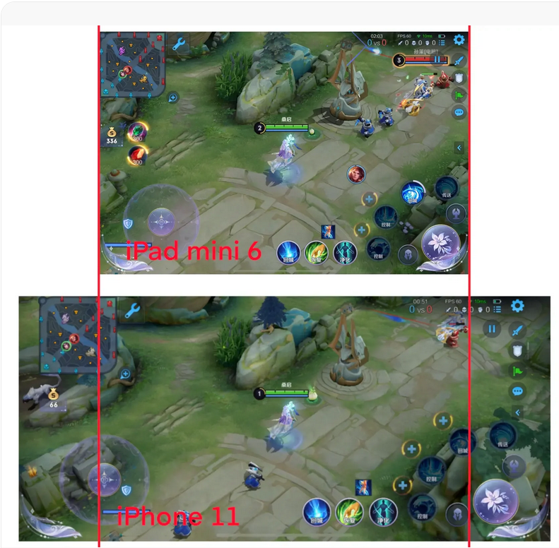 MINI6玩王者荣耀和手机对比左右视野变小