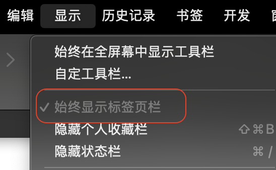 safari /显示/始终显示标签页栏 是灰色的,无法启用?