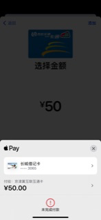 你开通了ApplePay吗。而不是使用的添加的银行卡为公交卡充值对吧