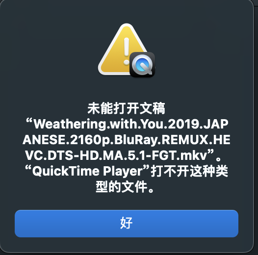 “QuickTime Player”打不开这种类型的文件。太伤心了,50多GB的电影下了半天,结果没办法导入到AppleTV和·QiuckTime Player