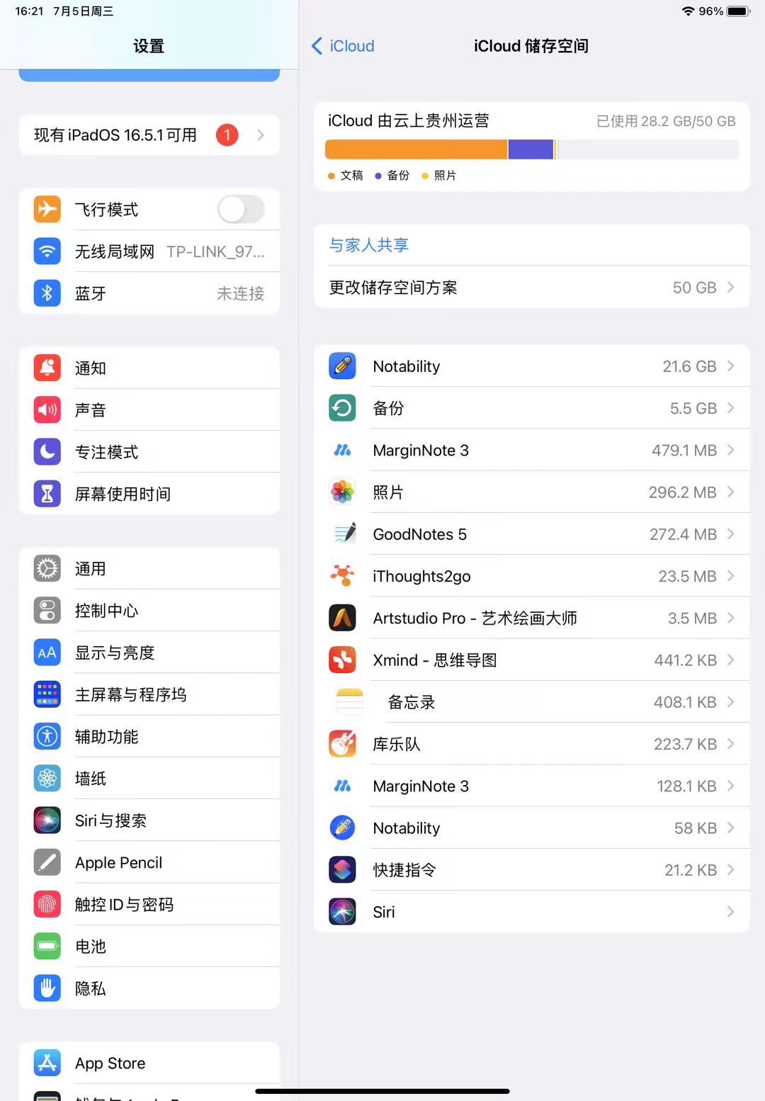 你在哪里看到的 Notability 空间占用的?