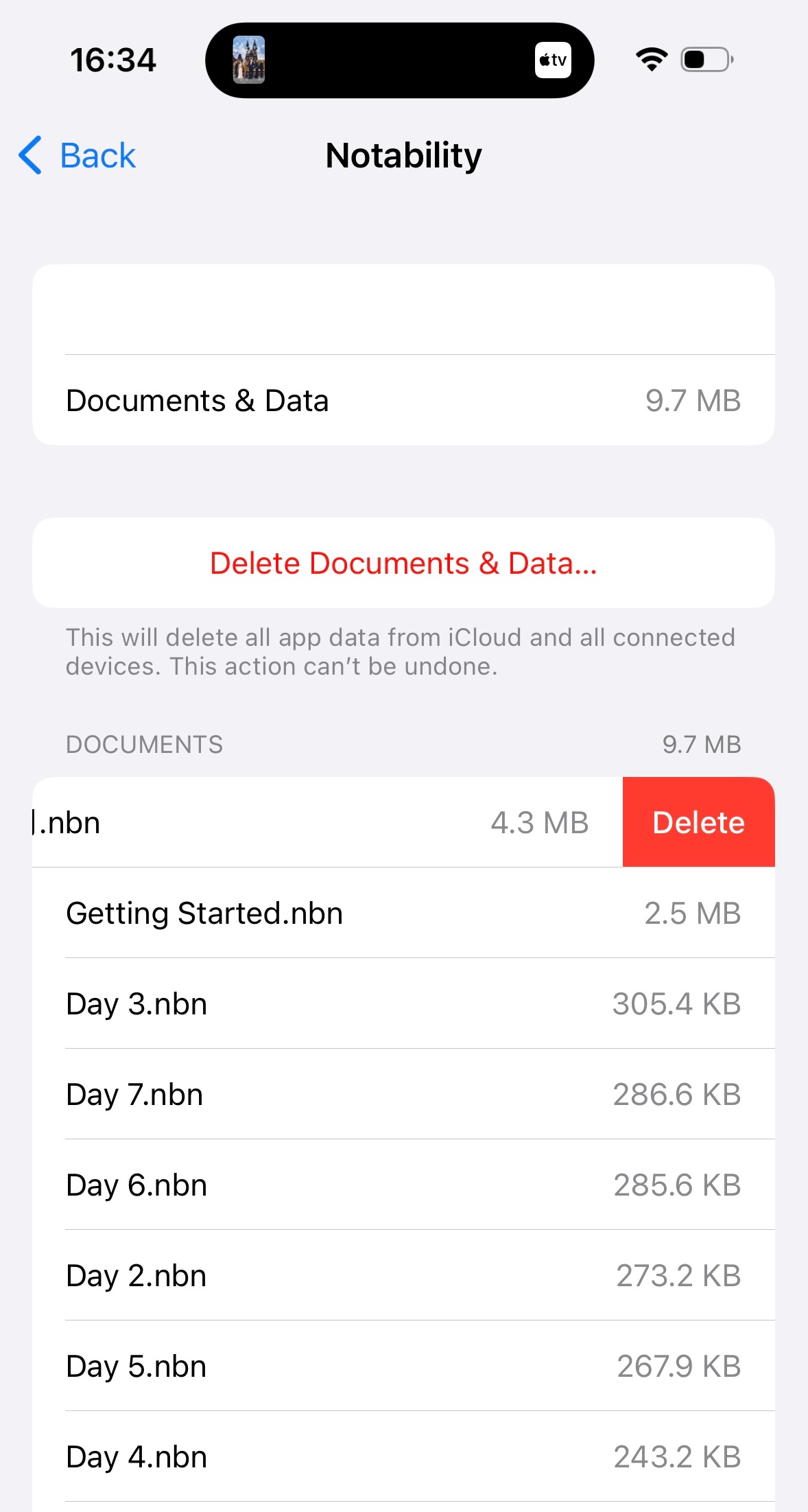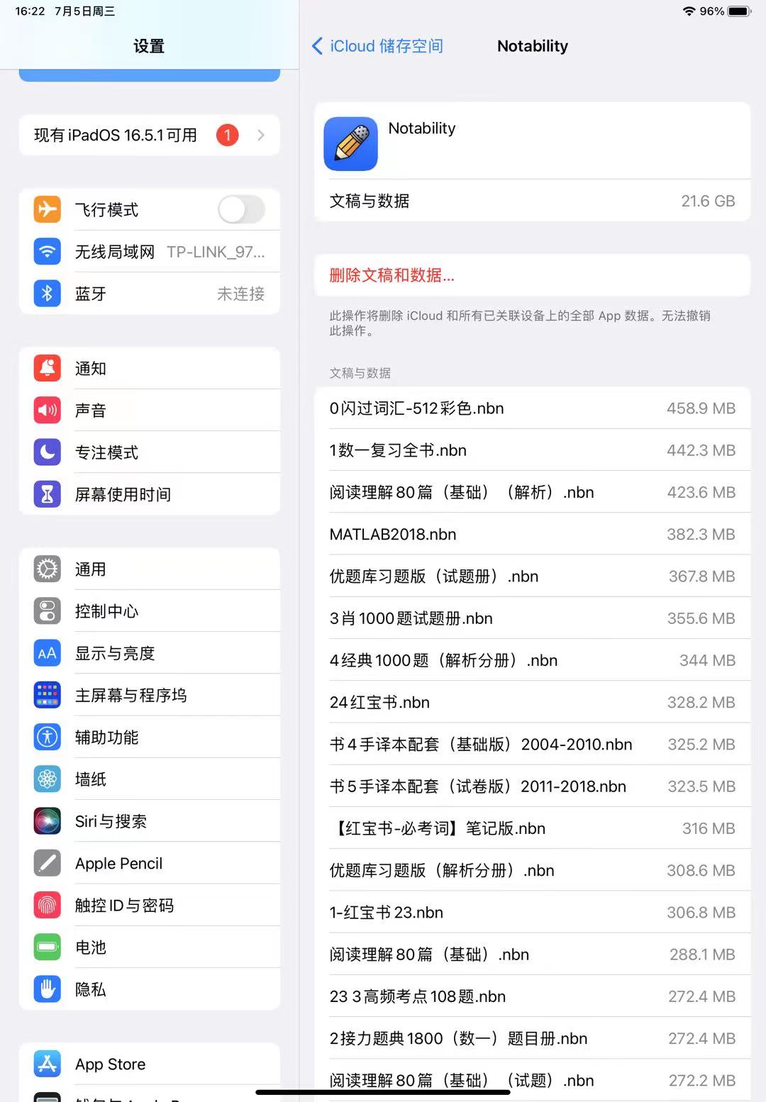 里面选到 Notability 就可以删除数据啊。