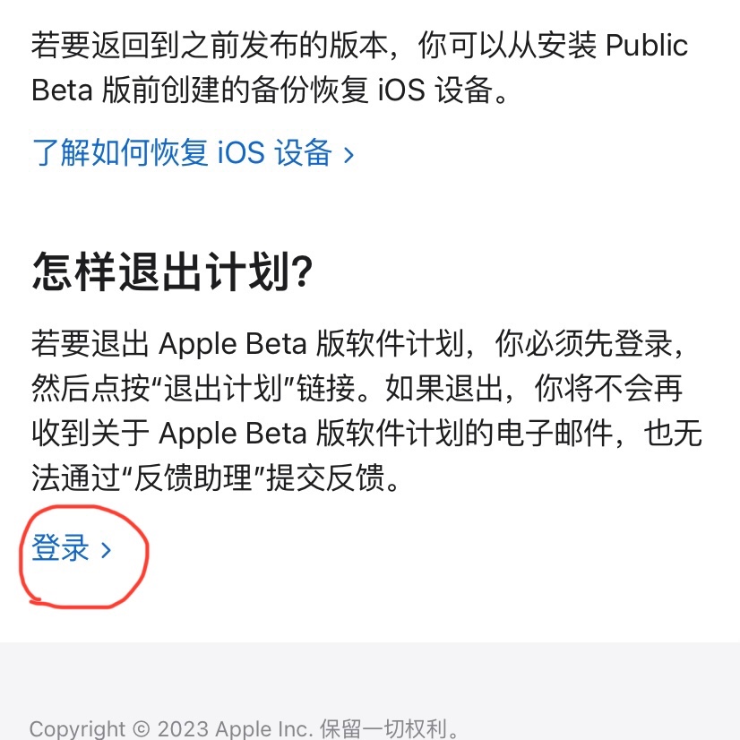 如果你需要永久退出“Apple Beta 版软件计划”,请点击以下链接:取消注册你的设备,(也就是你提供的第2张截图所显示的页面),点击“登录”,登录你的 Apple ID。