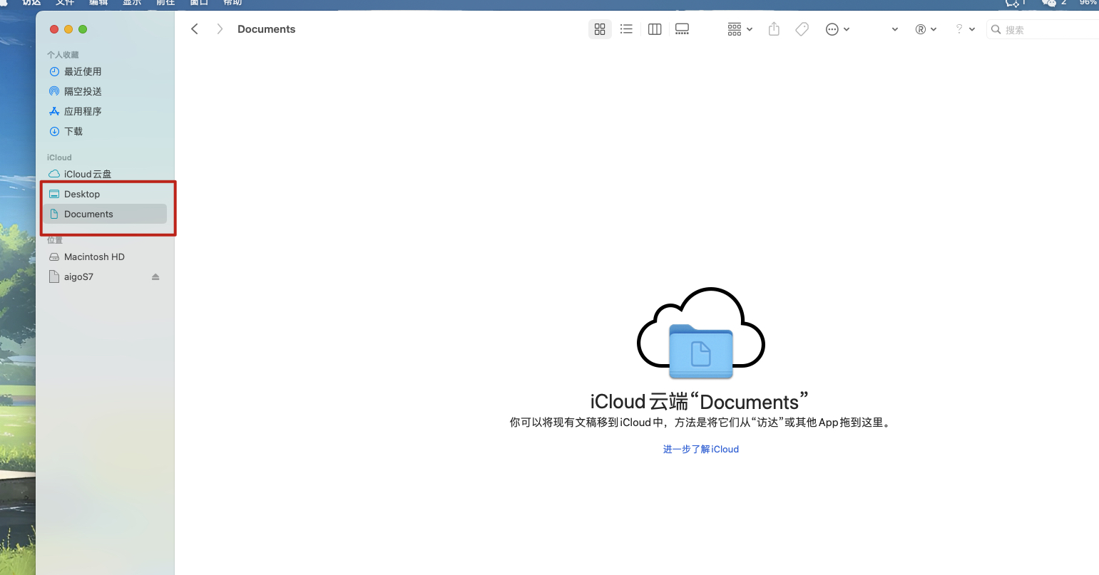 MacBook电脑里面iCloud云盘桌面和文稿都是英文的