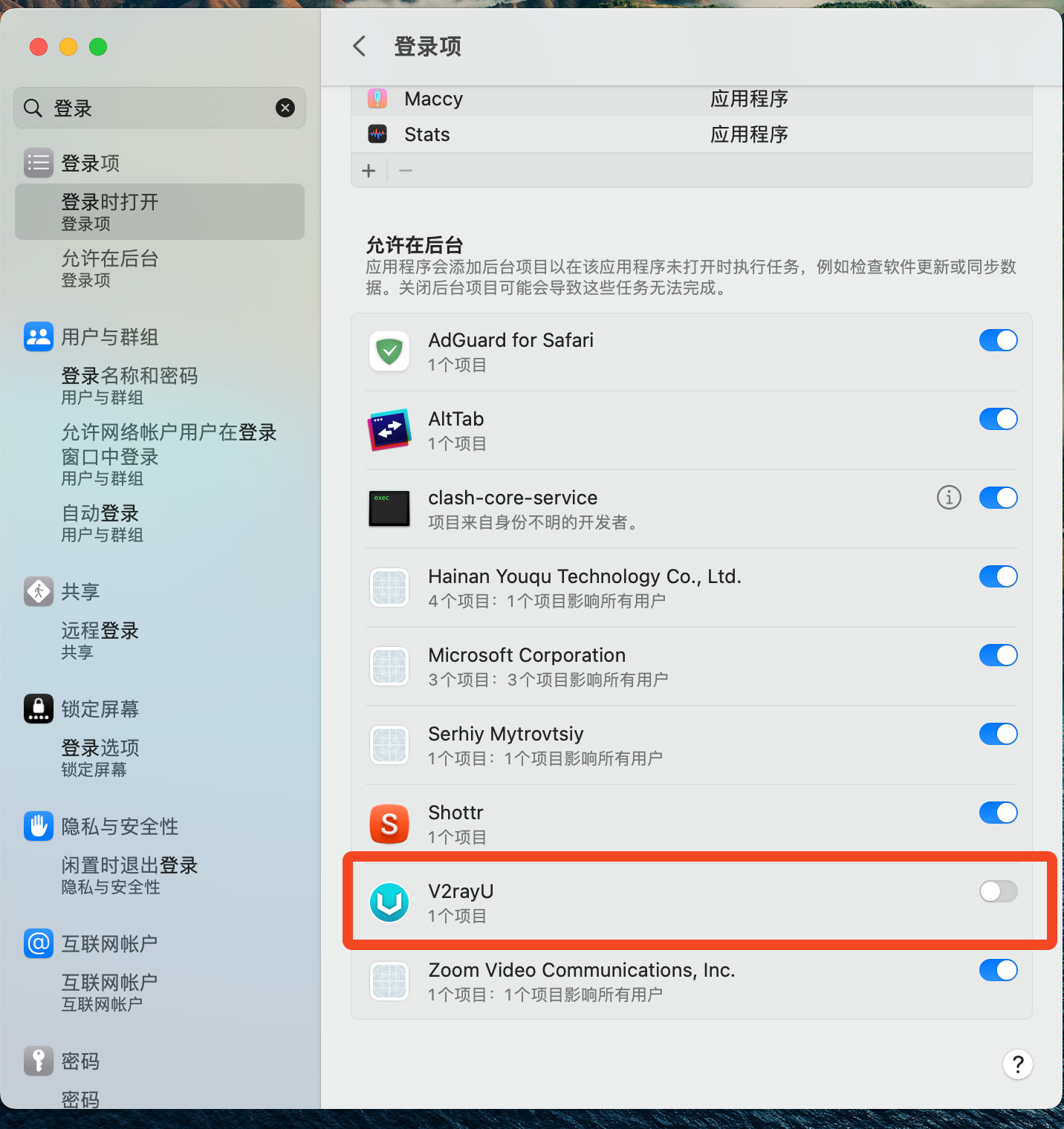 macOS 13卸载软件后在“登录项-允许在后… - Apple 社区