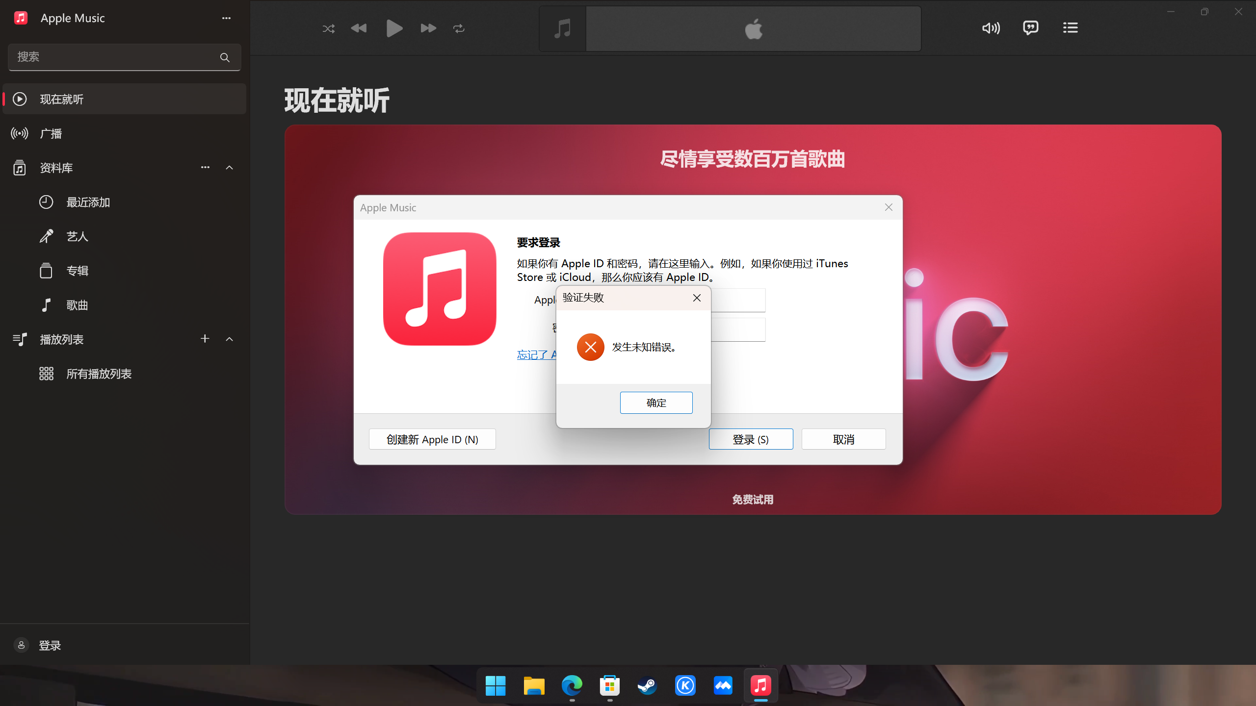 Apple Music 预览版无法登录