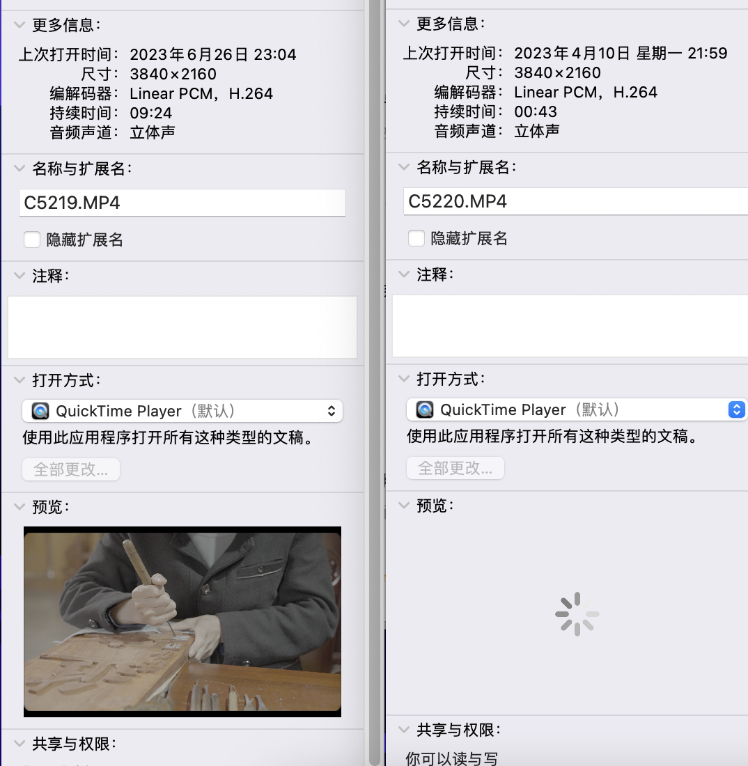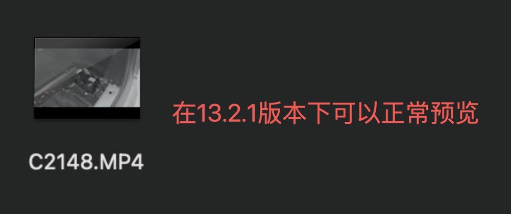 而搭载13.2.1系统的Mac可以显示缩略图,能正常播放、解码视频。