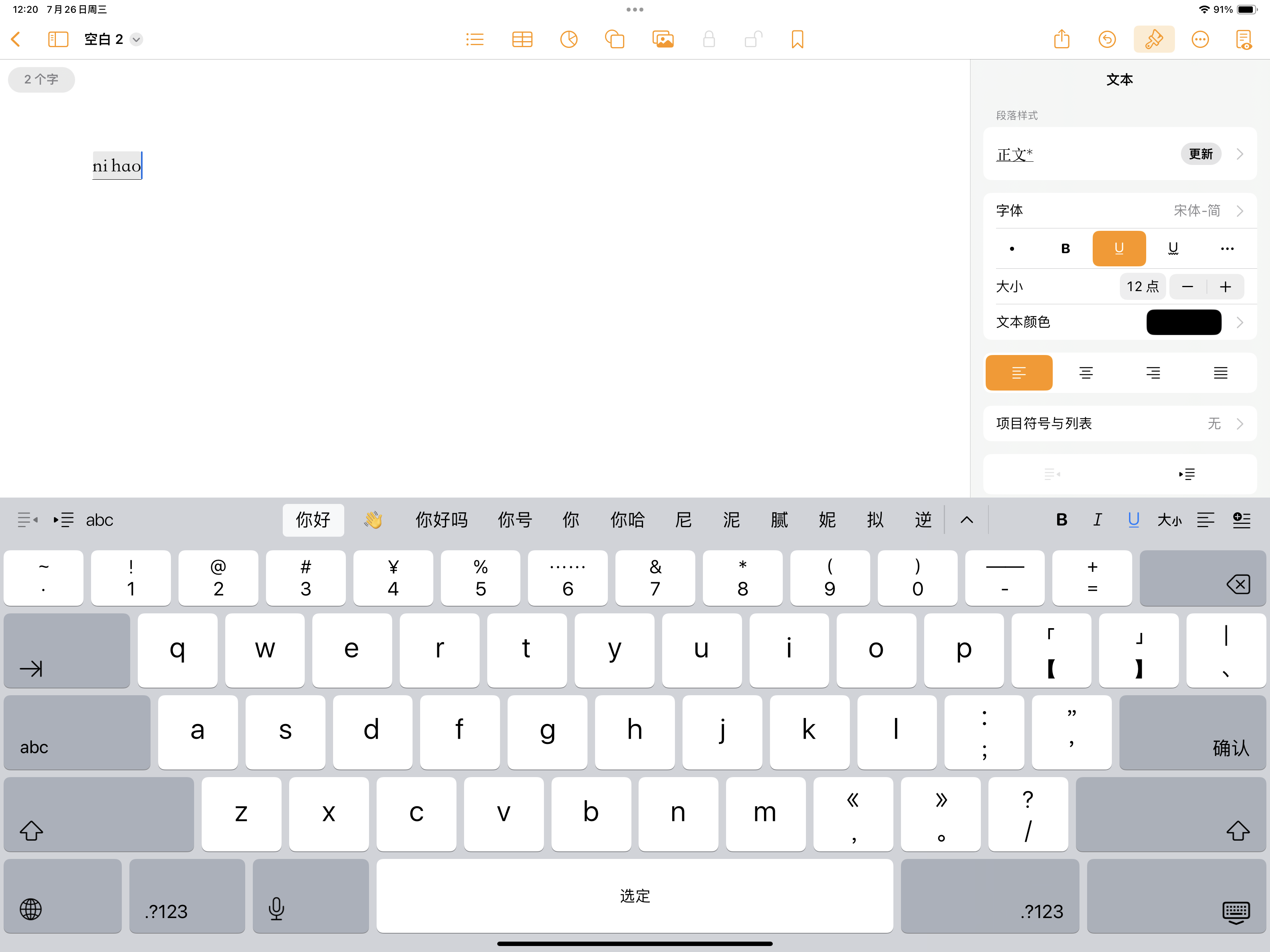 Pages ipad打字的时候直接有下划线,如何取消?