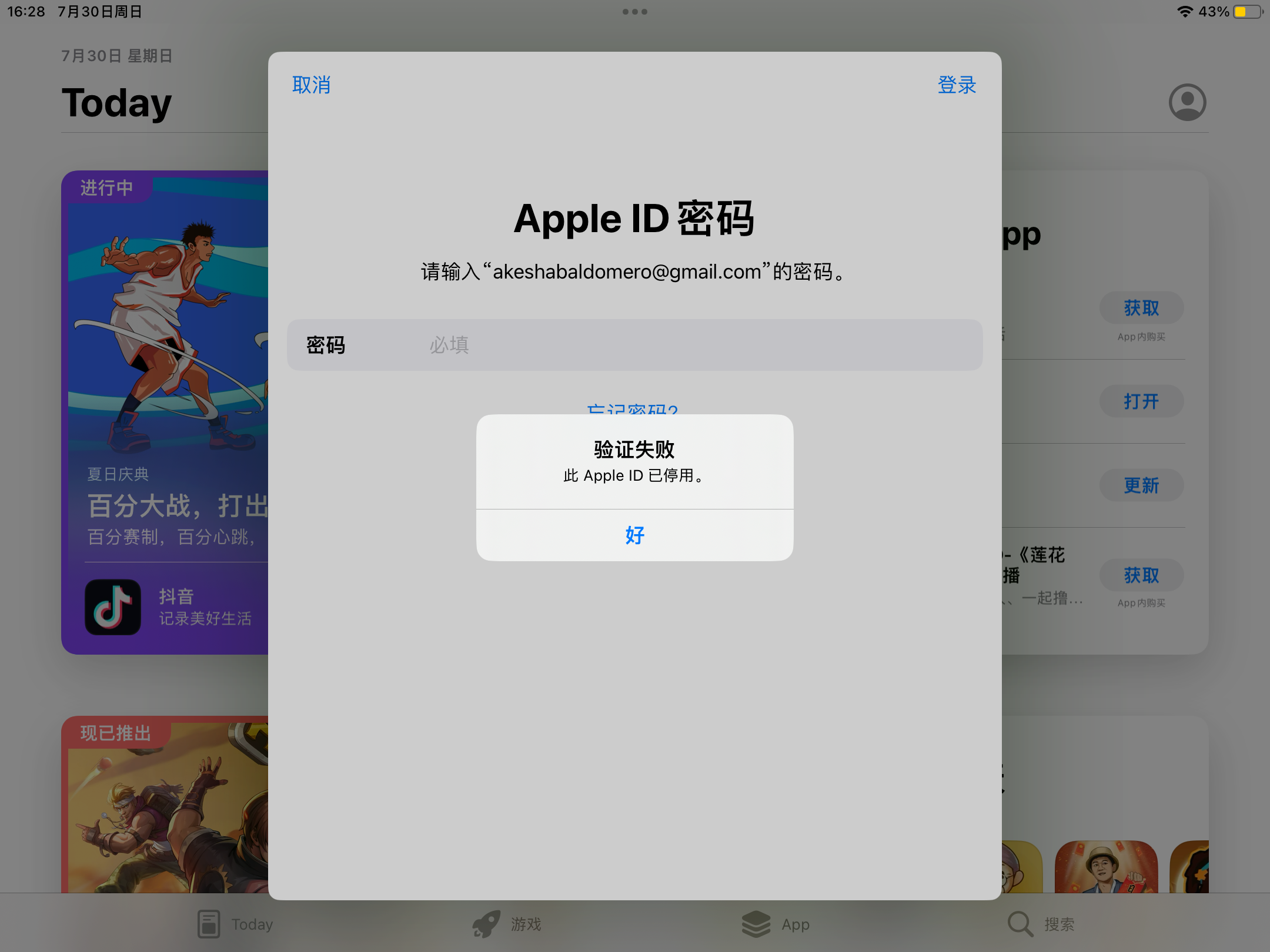 登录用密码验证完显示ID已停用