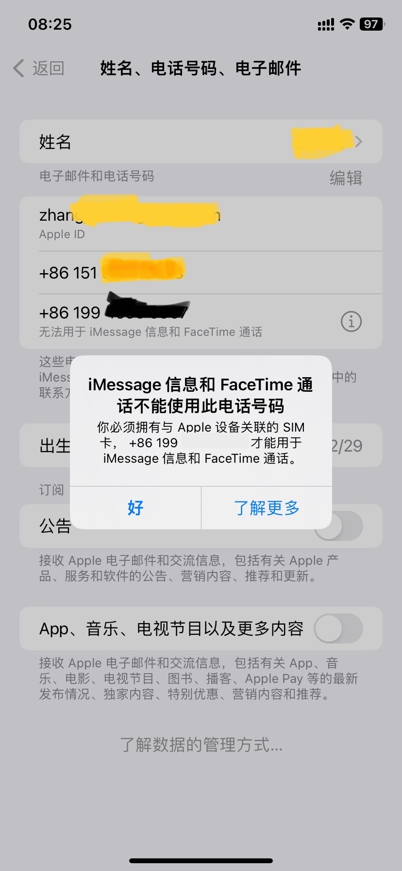 以下用户的用户个人资料: sxzyzhang sxzyzhang 作者 用户级别: 级别 1 5 积分 2023年8月12日 上午7:21 回应 JonathanBO 手机一直在我手上,没有插过其他的卡。在apple ID管理页面里面这个号码没有编辑的选项,在手机里也无法编辑,联系了apple客服,说在30天内给我后台删除 回复 链接