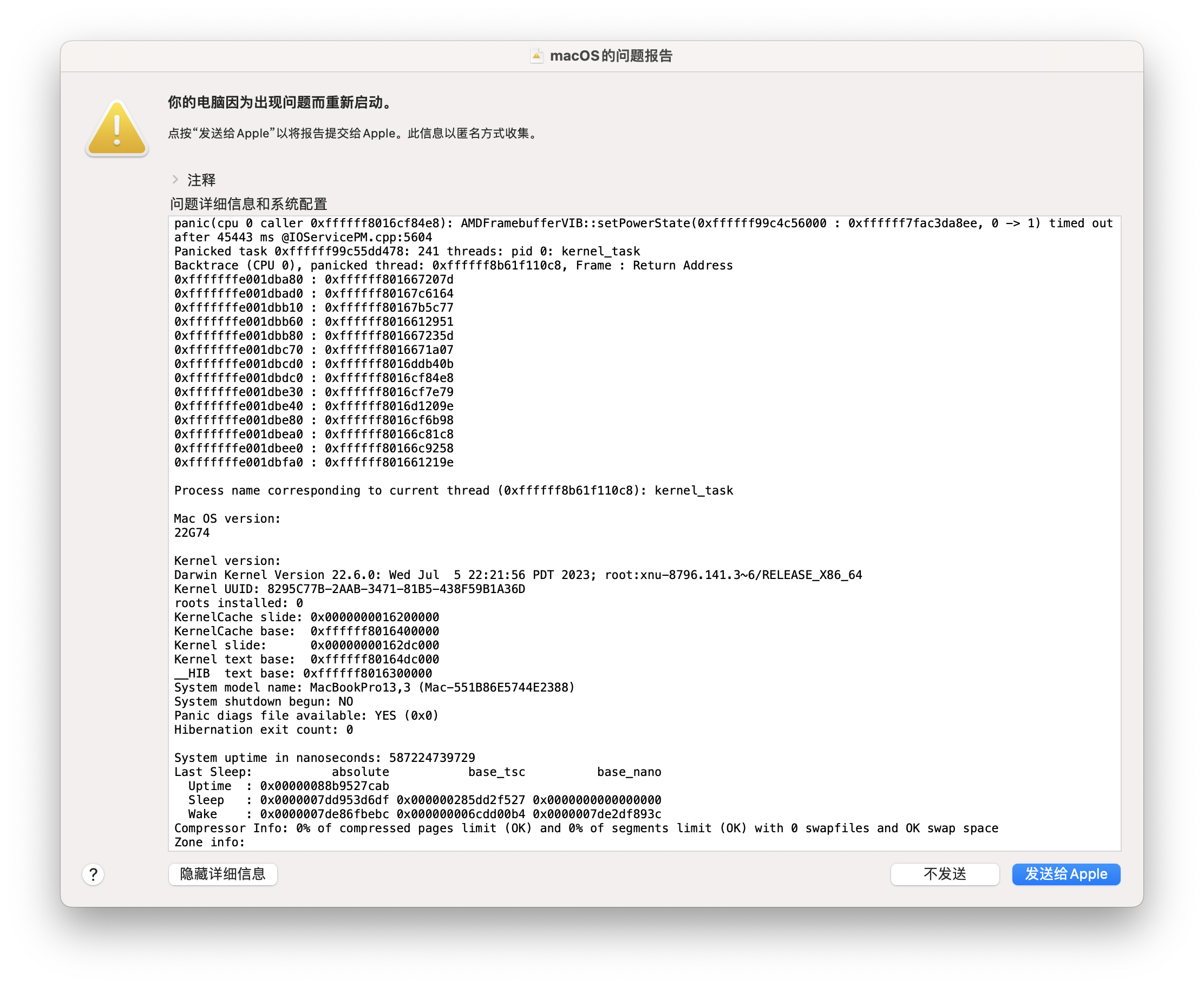 MacBook Pro(15 英寸,2016 年)收到推送升级Ventura13.5出现崩溃关机,无法自动/主动调节屏幕亮度等问题