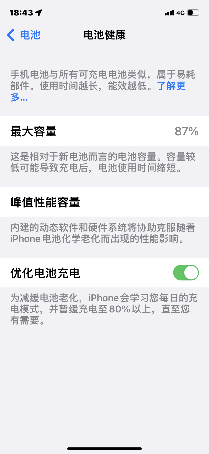 iPhone 11买了13个月,电池容量还剩87