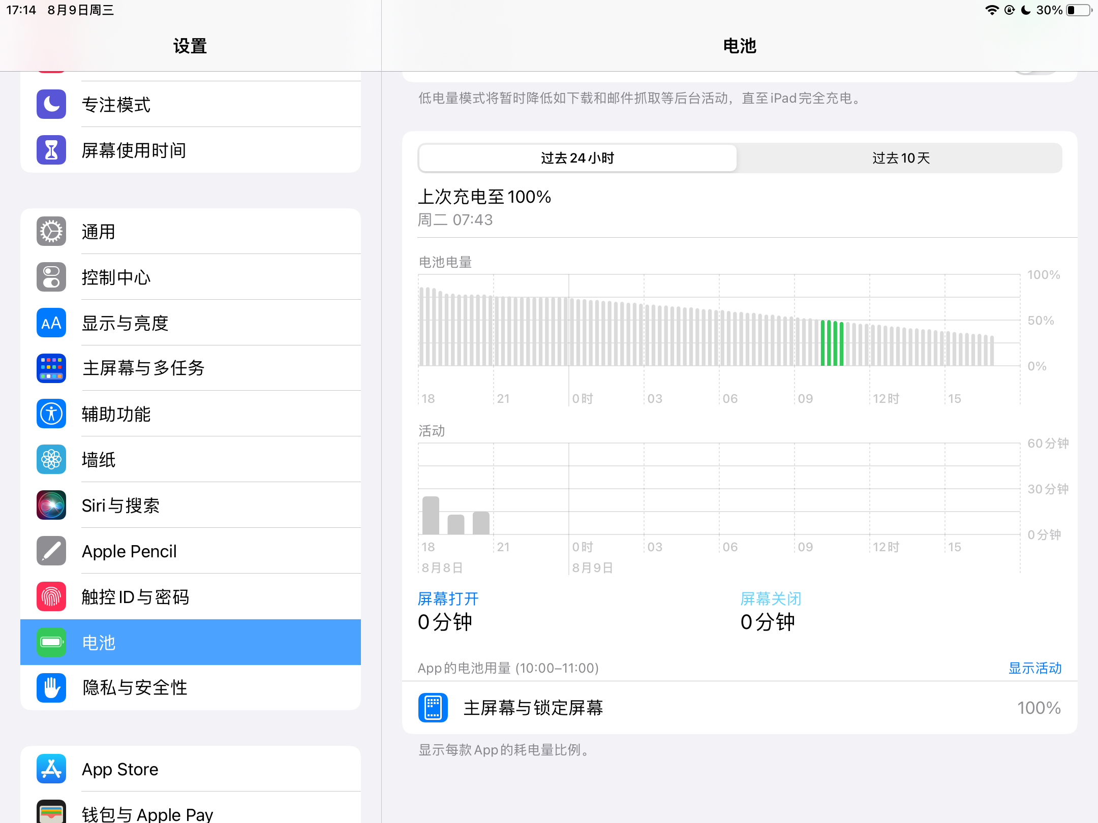 iPad9 我不能理解,电池这里也看不到被什么软件耗电 希望能解决疑惑,太糟心了 第二天要用的时候就电不多了,以前还没出现过。买来不到一年,电池应该不会有问题。