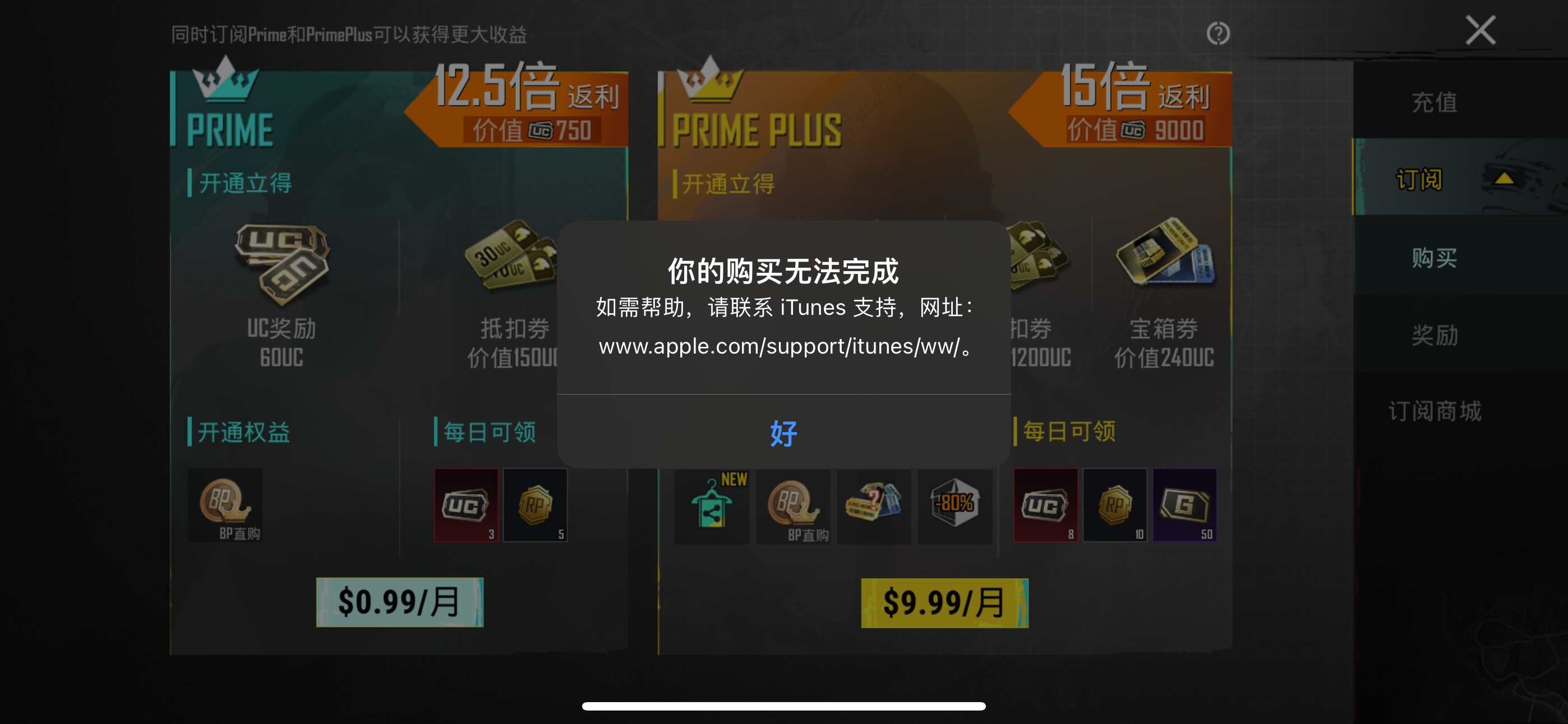为什么我的itunes在游戏无法充值显示你的购买无法完成