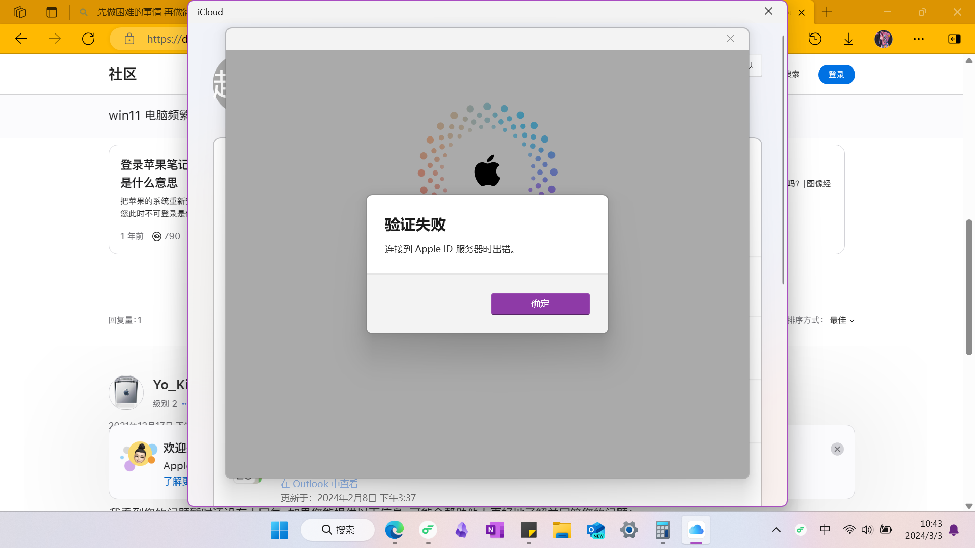 现在是2024年3月3日,最近一周内频繁出现弹出icloud登录的窗口,但永远也无法登录成功,照片也无法也无法与手机同步,尝试过重启电脑,卸载重新安装,使用VPN和卸载VPN,都无法解决,请求尽快修复。 系统Win11,最新更新。