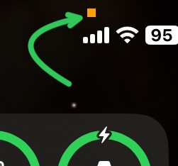 每当 iPhone 录音时,就会显示方形的橙色指示灯。如图一标记的地方。