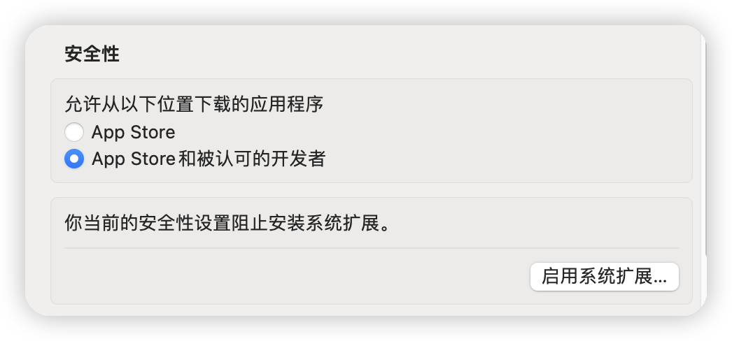 不知道什么时候在“安全与隐私”中提示的“来自开发者Rogue Amoeba Software, LLC的软件已被阻止载入”,我看了所有的app没有该公司的产品,也查了关于本机中的所有软件和扩展都没有这个签名的app,提示内容是这个。程序尝试载入由“Rogue Amoeba Software, Inc.”签名的新系统扩展,但安全性设置不允许载入系统扩展。若要启用,请打开“系统设置”的“隐私与安全性”。关于Rogue Amoeba Software我在网上查了有这几款软件,但是这几款软件我都没安,很奇怪为什么会出现这个扩展提示。