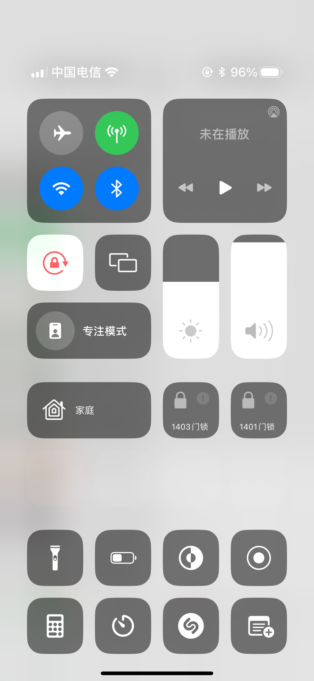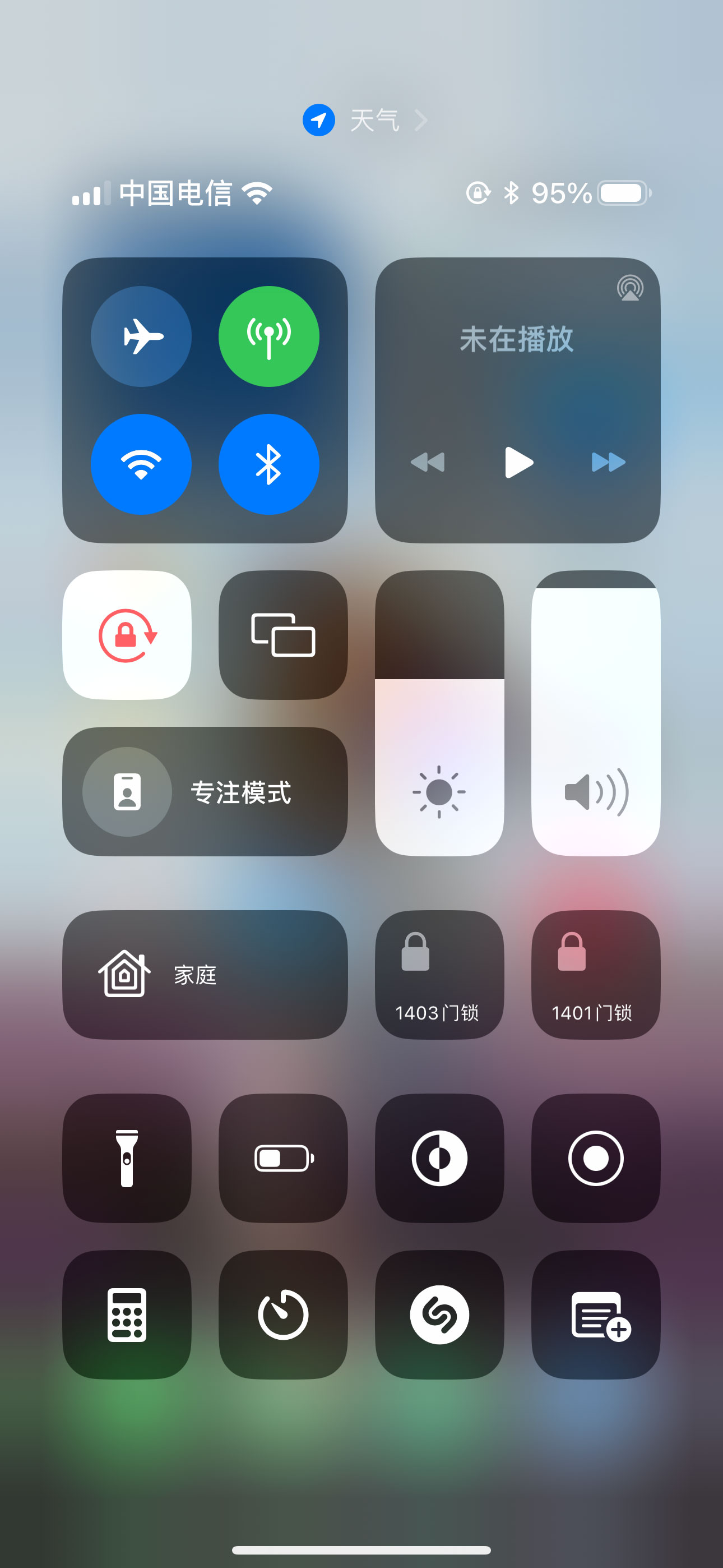 在控制中心打开 显示家庭控制后,正常会显示如下: