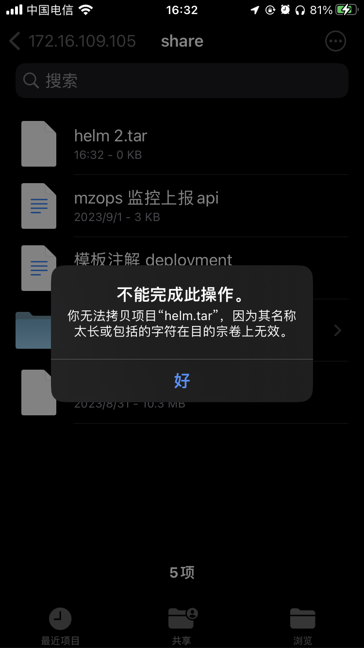 iPhone SE3 文件app 连接samba,不能复制到samba目录,之前使用过是可以的,最近突然不行了