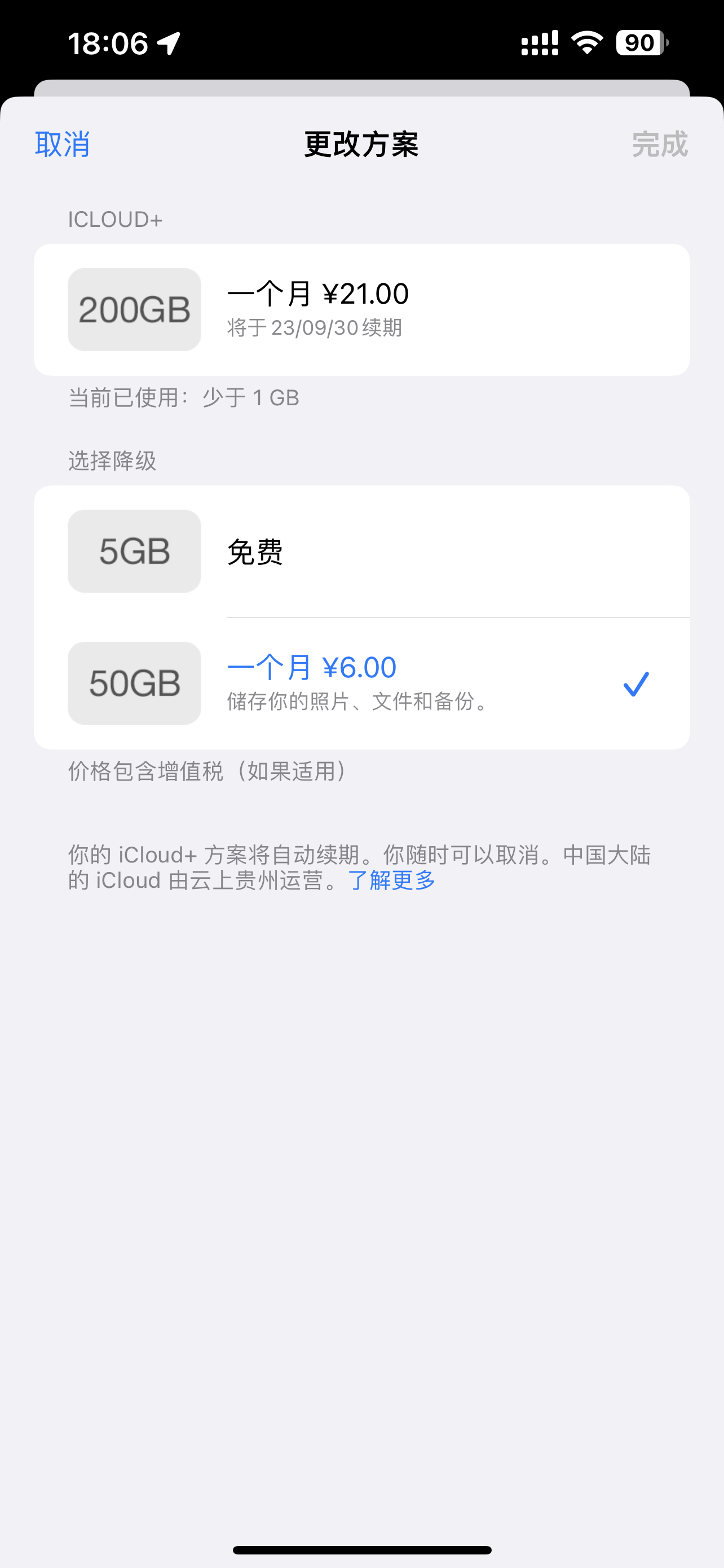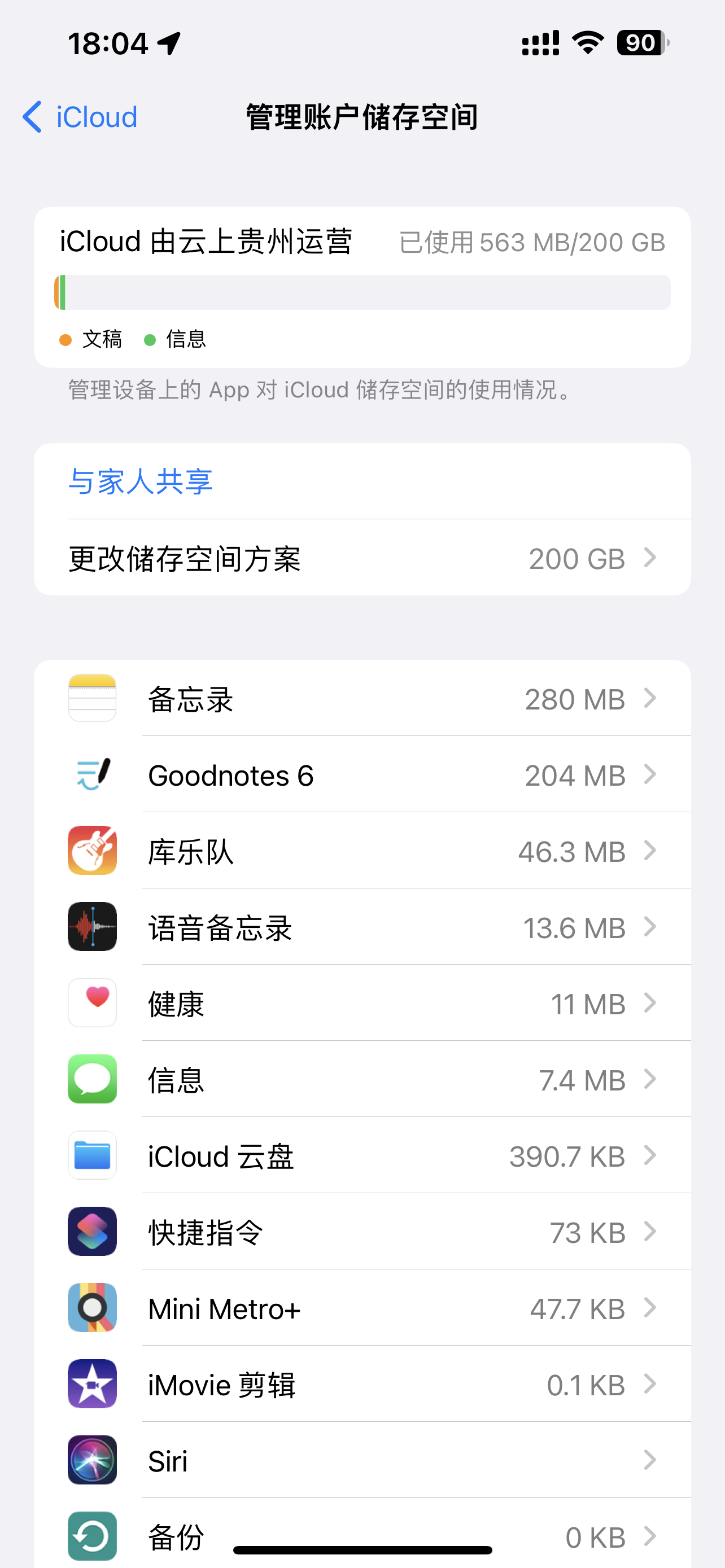 现在已使用的iCloud存储为563MB,离标准版的5G仍有大量空间,况且Goodnotes占用的存储空间为3.5GB,加起来也不到标准版的5G容量。况且目前iCloud+方案为100GB,且iCloud+降级选项也是50GB。所以一定不是容量的问题。