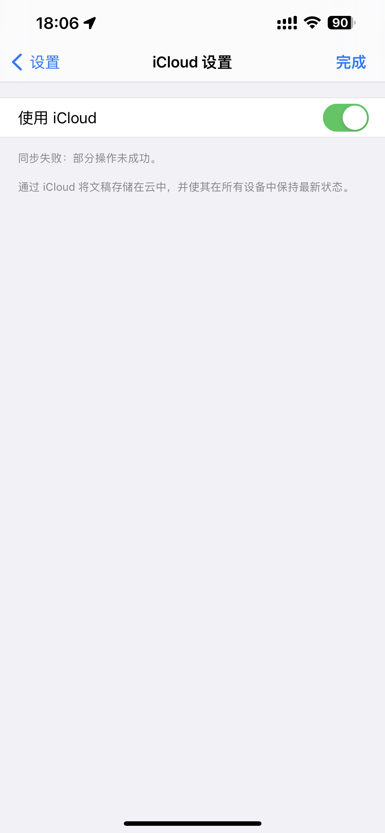 原来用iCloud备份手机里的很多照片,前几天将备份关闭并删除iCloud中的照片,系统默认保存一个月(今天算起还有20天);想着降级iCloud+方案,然后就发现Goodnotes软件里的iCloud设置里的“使用iCloud”功能不能用了,显示“同步失败,部分操作未成功”。